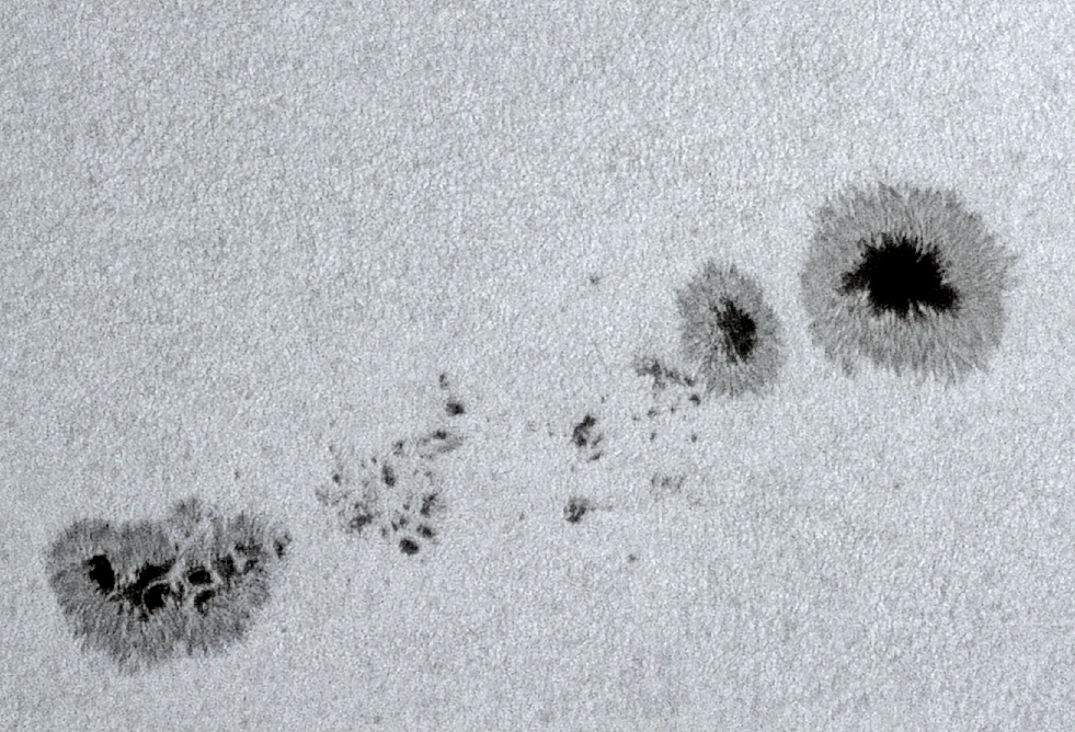 Eine von 27 Aufnahmen hat es dann doch getan. Bedingungen, die ich sonst nur in der Heizperiode habe, wenn das Objekt genau über dem Kamin des Nachbarn steht! Diese Fleckenregion lohnt aber doch viele Versuche. Immer noch viele Lichtbrücken und mehr und mehr Fragmente. Selbst die Granulation macht Spaß.