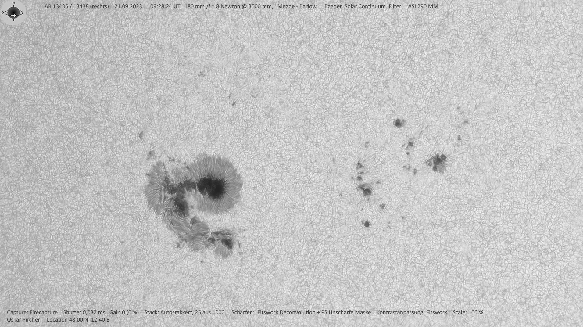 Leserbilder Astronomie: AR 13435 und 13438 vom 21. September 2023