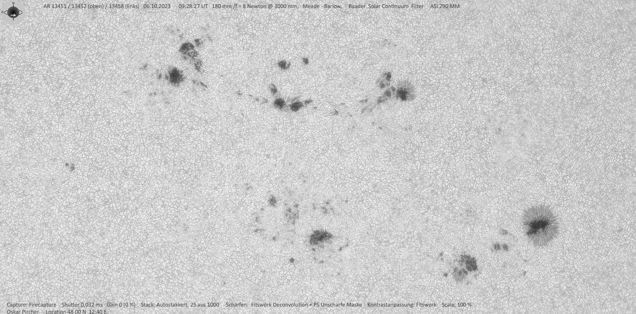 Leserbilder Astronomie: AR 13451, 13452 und 13458 vom 6. Oktober 2023