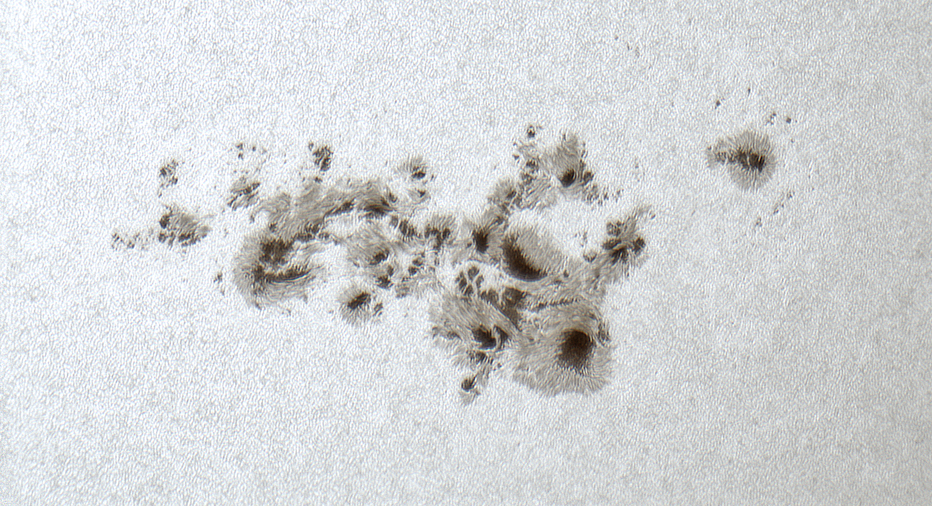 Diesen riesigen Zusammenschluß zweier Sonnenfleckengebiete darf sich kein Sonnenfotograf entgehen lassen! Da dürfen auch keine Quellwolken mit Luftturbulenzen im Wege stehen! Ständige Energieausbrüche begleiten die Erscheinung und stellen ein Wochenende mit Nordlichtern in Aussicht. Ein bereits vierter Massenauswurf mit Richtung Erde ist nach derzeitiger Information mit 1004 KM/Sek. unterwegs.