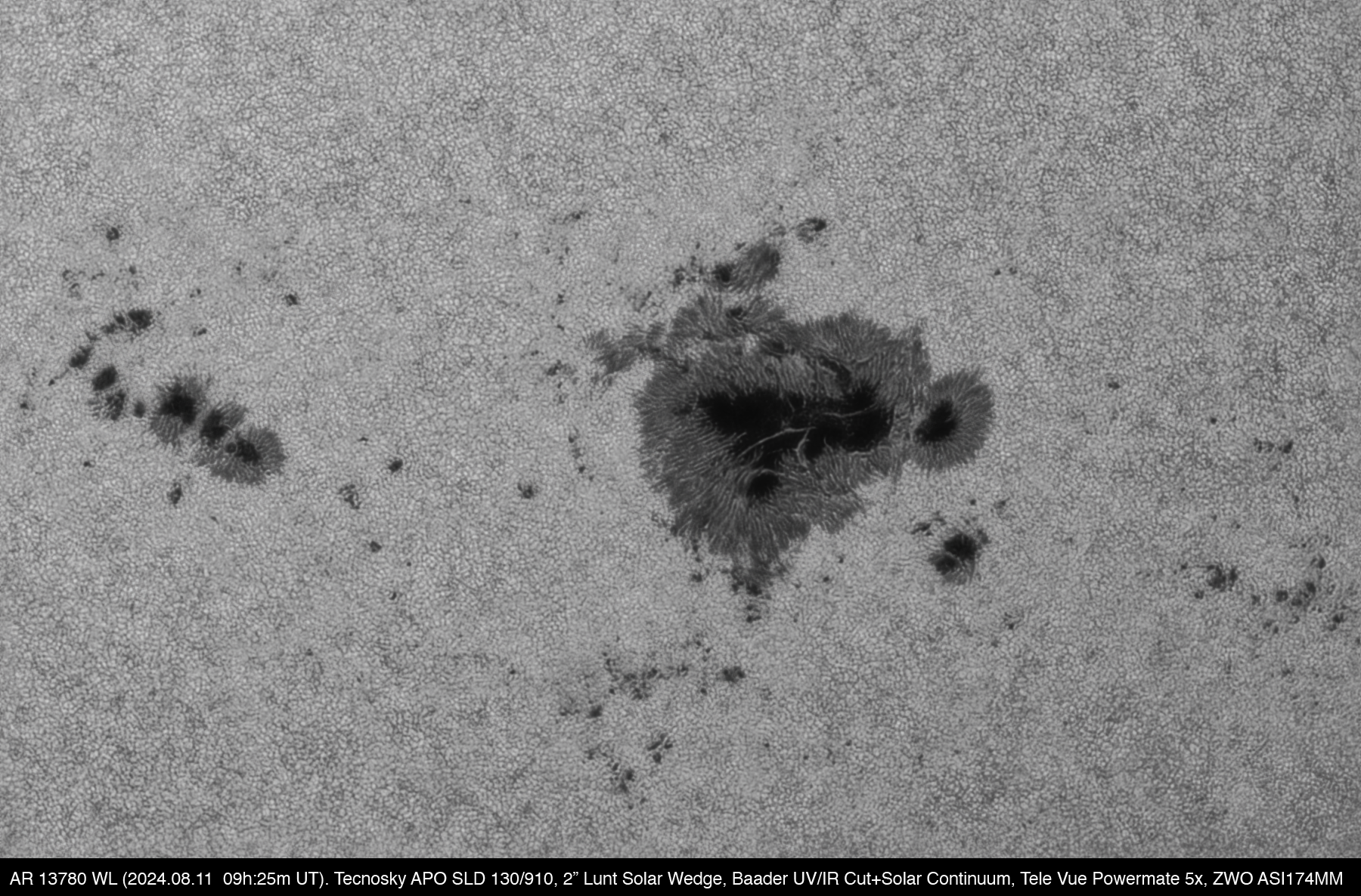 Active Region 13780 imaged on August 11, 2024 from Syracuse, Italy, in white light