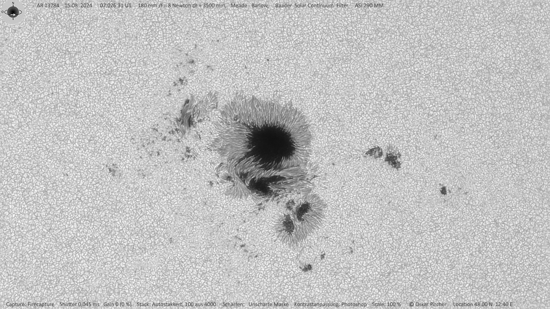 | Kamera | ASI 290 MM, Baader Solar Continuum Filter |
