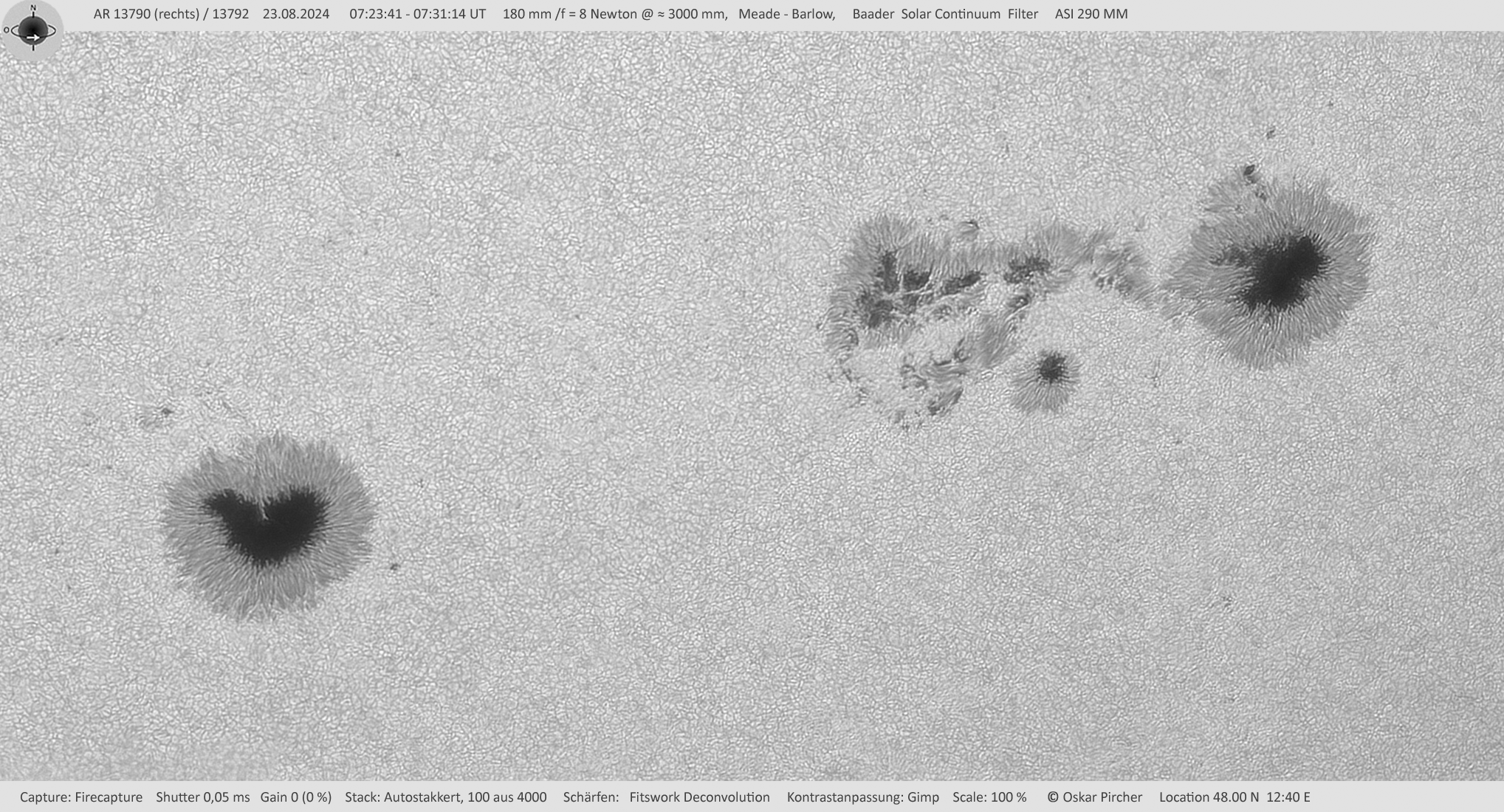 Leserbilder Astronomie: AR 13790 und 13792 vom 23. August 2024