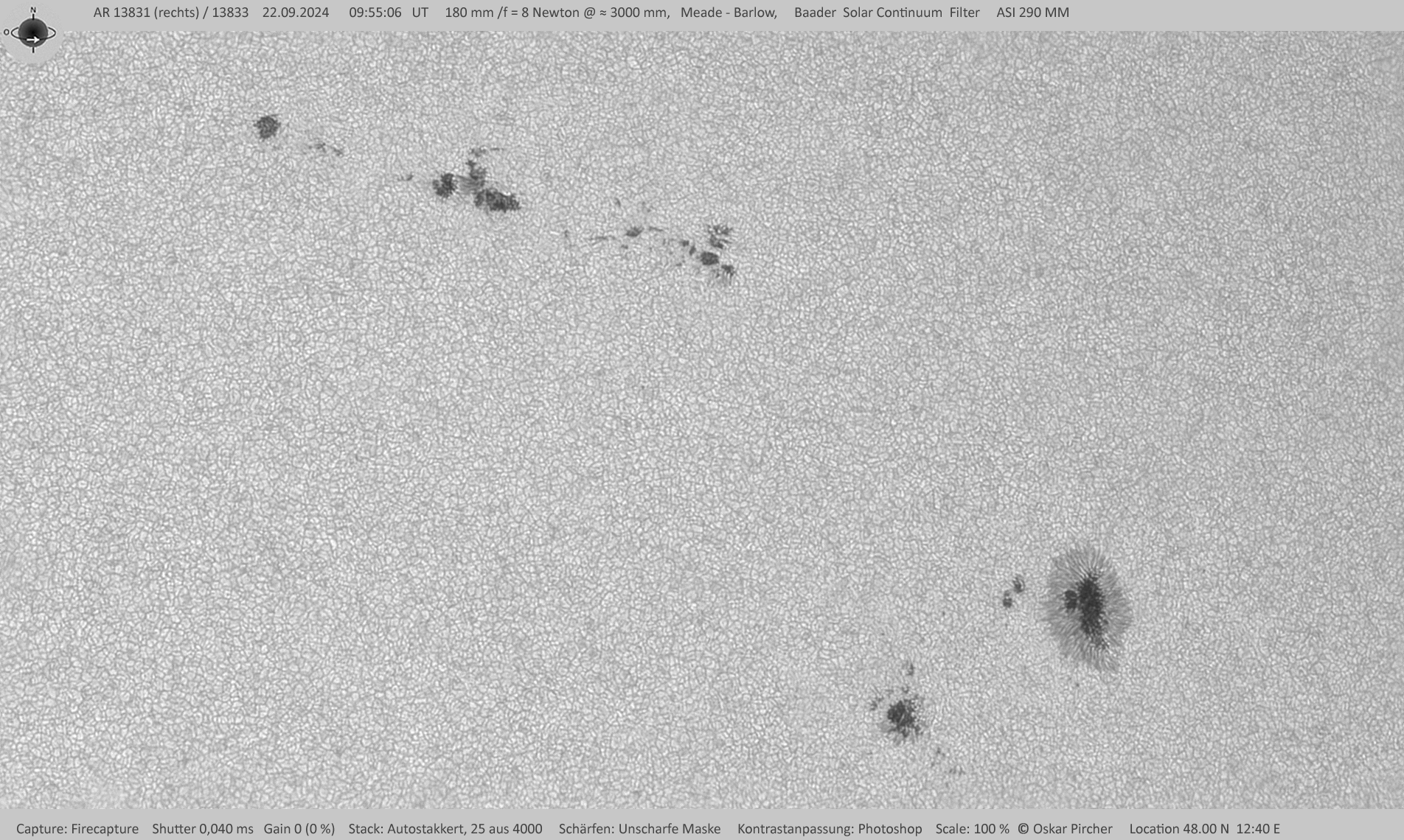Leserbilder Astronomie: AR 13831 und 13833 am 22. September 2024