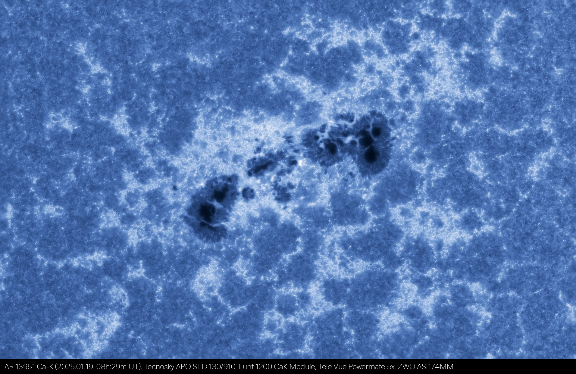 The active region 13961 imaged on January 19, 2025 from Syracuse, Italy, in the Ca-K line (393.4 nm).