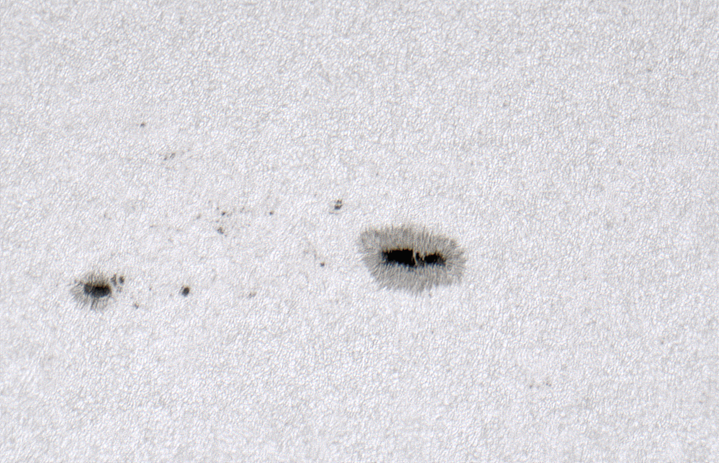 Eigentlich wollte ich nur ein paar Filterkombinationen ausprobieren. An eine gute Aufnahme war nicht zu denken. Dicke Wolken ließen nur 30 bis 45 Sekunden eine milchige Lücke frei. Als alle Tests durch waren (und wirklich kein Bild verwertbar war), habe ich dennoch ohne Filter eine Vergleichsaufnahme gemacht, wollte ich doch wenigstens einen Eindruck vom Kontrast bekommen. Und diese etwa 30 Sekunden brachten mir dann doch einige Dopamine mehr, als erwartet :-) Mein Versuch, das zu wiederholen, ist dann jedoch auf ganzer Linie gescheitert. So habe ich mich dann mit einem Dopaminschub zufrieden gegeben.
