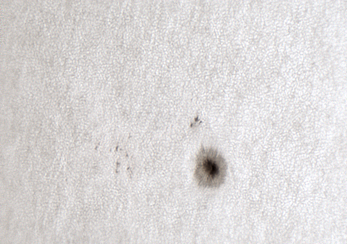 Freiwillig und ohne Not habe ich bei DEN Temperaturen den "neuen" Sonnenfleck aufgenommen ;-) - und das naturgemäß in der prallen Sonne! Aufgrund der Jetstreams ein wenig schwierig, es ist alles turbulenter, als es auf den ersten Blick scheint, aber ein Video hat dieses Ergebnis ermöglicht.