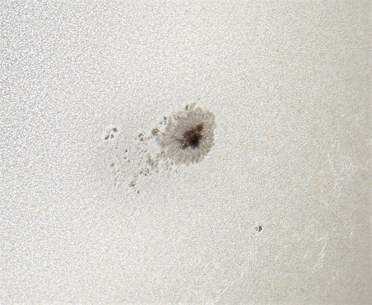Hier wohl (wetterbedingt) eine letzte Aufnahme des Sonnenflecks AR 2835 und AR 2836 (ist ja nicht mehr viel übrig vom Zweitgenannten). Man beachte die Strukturen und Details in der Umbra selber. Vor der großen Wolkenfront habe ich noch eine gute Lücke erwischt!