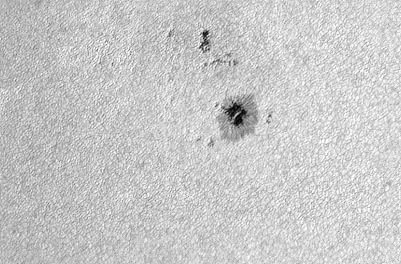 Aufgenommen bei etwas mäßigeren Bedingungen als erwartet (und erhofft). Aber: Man beachte die Lichtbrücke und die Details in der Umbra. Ich hatte es mir noch etwas »feiner« gewünscht...