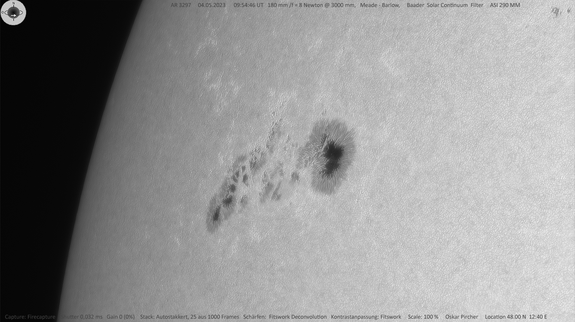 | Kamera | ASI 290 MM, Solar Continuum Filter |