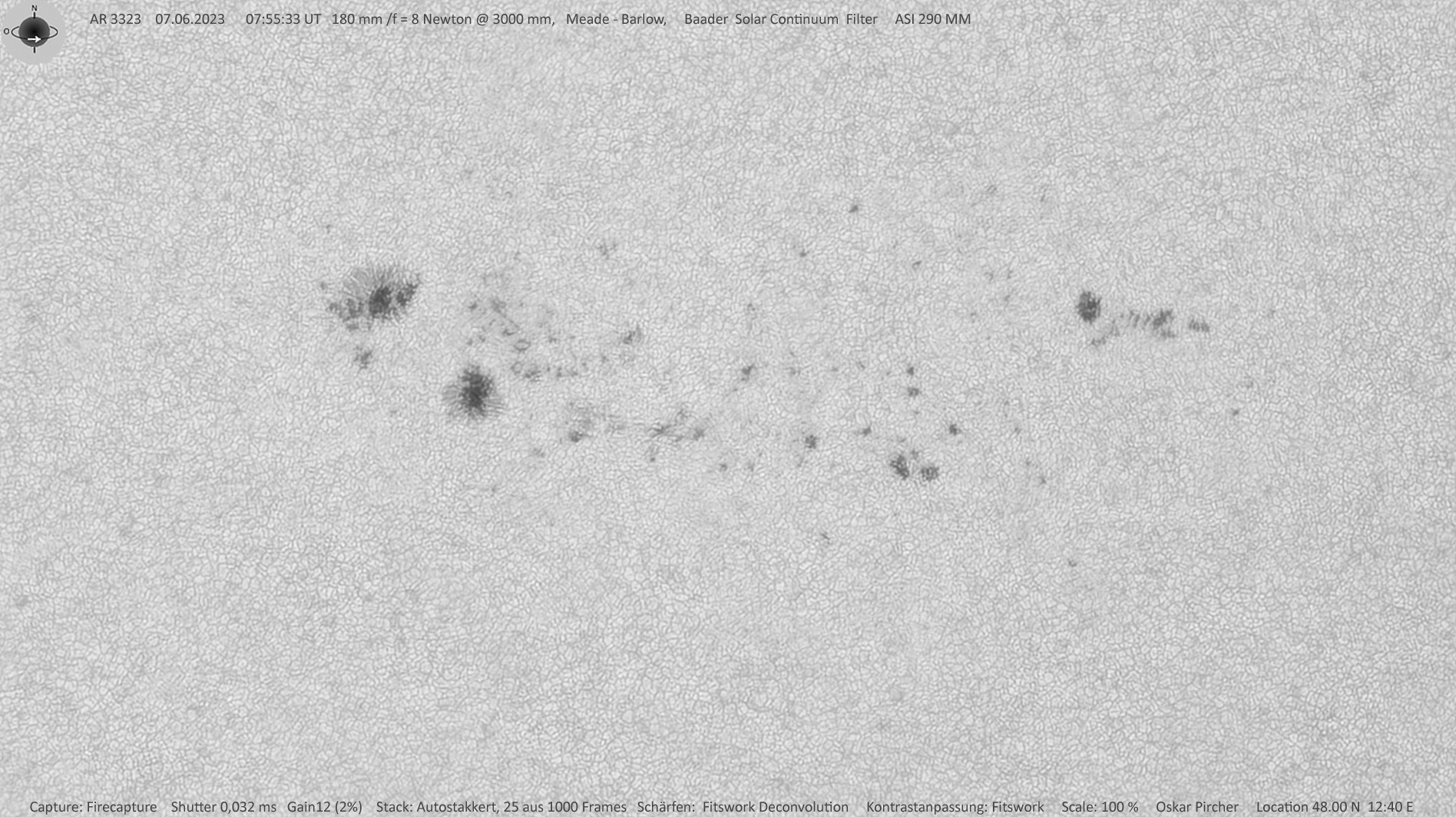 | Kamera | ASI 290 MM , Baader Solar Continuum Filter |