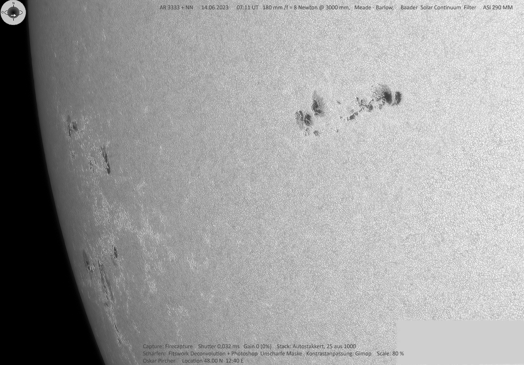 | Kamera | ASI 290 MM mit Baader Solar Continuum Filter |