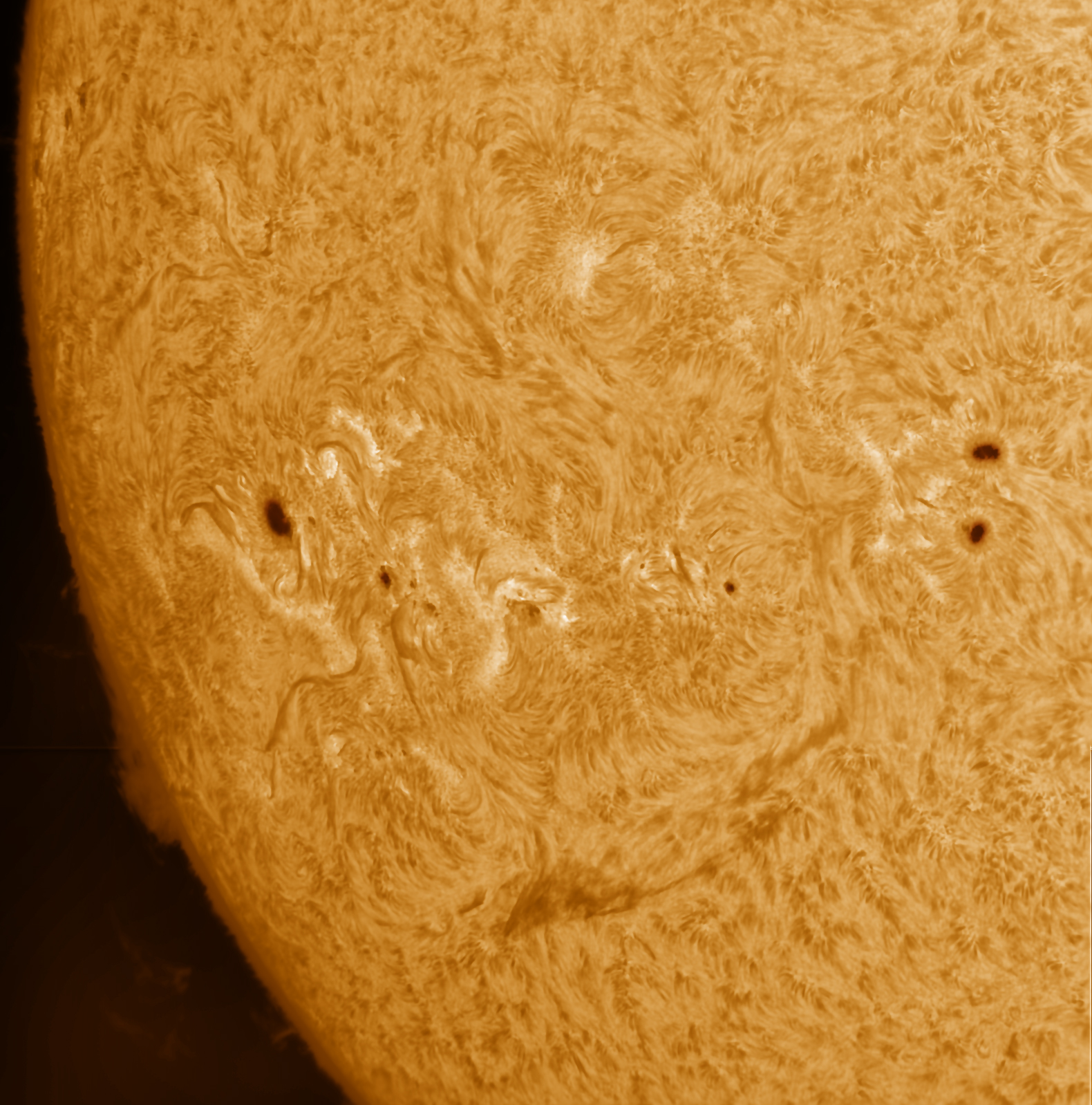 Jene Fleckengruppe, die dem gesamten Planeten (Milliarden von Bildern aus der ganzen Welt) Polarlichter in der Nacht vom 10. auf den 11. Mai brachte, ist zurück für ihre dritte (!) Umrundung der Sonne. Leider hatte ich heute Morgen gerade mal 20min für die Aufnahmen, und das nur bei weißem Himmel.