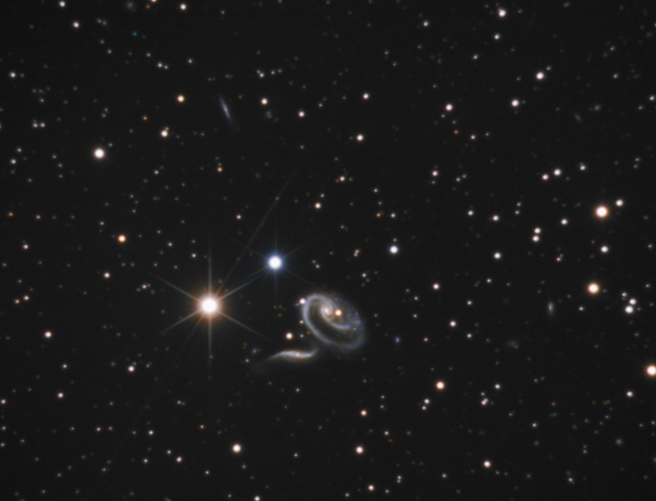 Arp 273 ist ein Paar von wechselwirkenden Galaxien in 300 Millionen Lichtjahren Entfernung. Die größere Spiralgalaxie UGC 1810 hat etwa fünfmal mehr Masse als die kleinere mit der Bezeichnung UGC 1813. Von uns aus gesehen dürfte der Abstand der beiden Galaxienkerne rund 100000 Lichtjahre betragen.