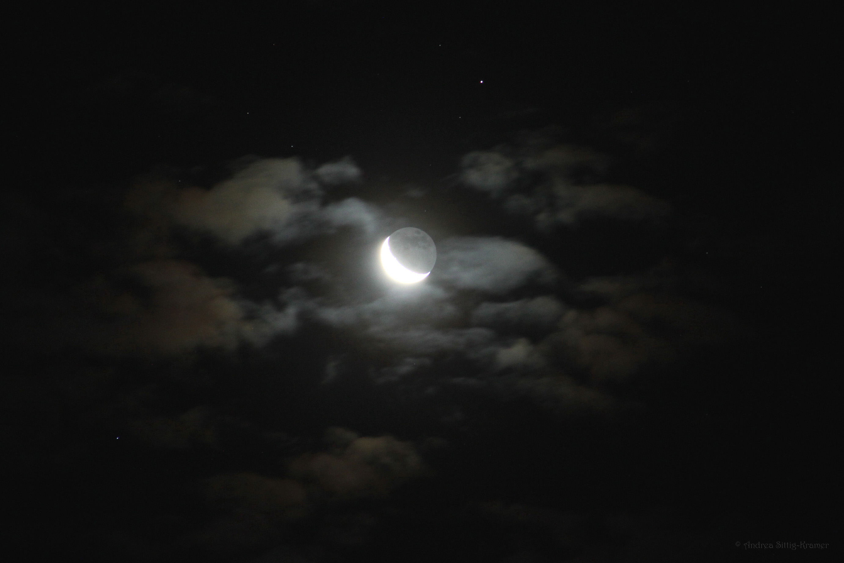 Der morgendliche Planetenreigen mit seinen langsamen steten Veränderungen und seiner atemberaubenden Schönheit hält mich unverändert in seinem Bahn. Am frühen Morgen des 6. Dezember 2015 war in Uelzen der zu 26 Prozent beleuchtete Mond dicht unter dem Mars zu bewundern. Einige Wolken, die sonst so häufig die Beobachtungen der Planeten-Konstellationen verhindern, "zauberten" Bruchstücke von Halo-Farben um den Erdtrabanten. Das aschgraue Mondlicht als weiteres Lichtphänomen, vervollkommnete den morgendlichen Anblick.