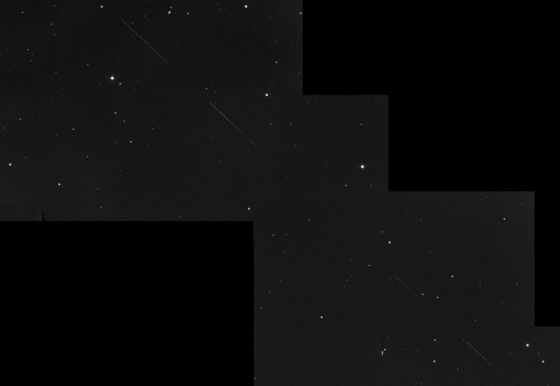 Der Asteroid 2012 TC4 (K12T04C) kam uns mit weniger als einem Viertel der Mondbahn relativ nahe. Grund genug, seinen Vorbeiflug zu dokumentieren und astrometrische Messungen vorzunehmen. Leider machten durchziehende Wolken einige Lücken in die Spur des Asteroiden. Zum Aufnahmezeitpunkt legte er innerhalb von 40 Minuten ein Grad am Himmel zurück!