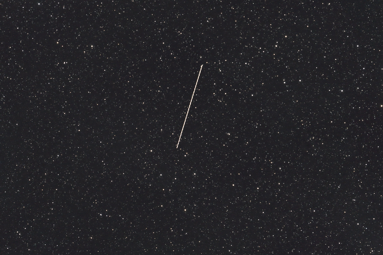 Das Bild zeigt den Weg des Asteroiden im Sternbild Füchschen (Vulpecula) am 3. September 2017 von 21:46 bis 22:46 Uhr MESZ (29 Aufnahmen je 2 Minuten mit je 5 Sekunden Zwischenraum). Dabei legte er am Himmel eine Strecke von rund 21 Bogenminuten zurück (Bild zeigt ca. 60 x 90 Bogenminuten). Er war dabei 9,4 mag hell und 7,58 Millionen K;ilometer entfernt (= 19,7fache Mondentfernung). Am nahesten war er aber bereits am 1. September 2017 um 17:30 MESZ mit 7,07 Millionen Kilometer.