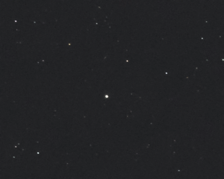 Gestern abend war nach sehr langem Warten endlich wieder für drei Stunden klare Sicht. Flora stand günstig und so konnte ich eine Reihe von Bilder machen, die ich zu einem gif zusammen setzte. Es ist nur ein sehr kleiner Ausschnitt der Originalbilder und ich benutzte nur jedes vierte Bild ... Zeitintervall jeweils elf Minuten, dies während 110 Minuten.