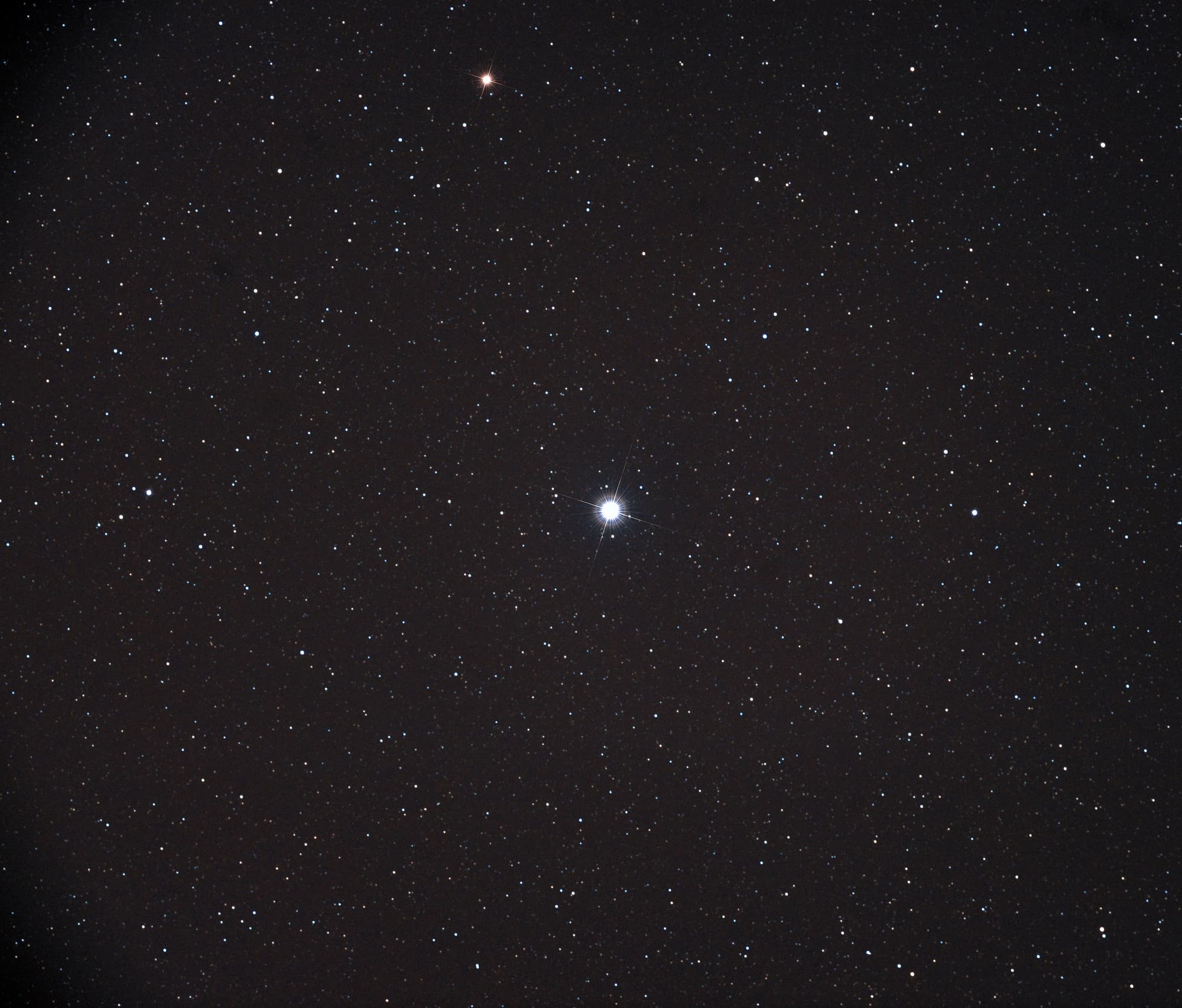 Mit Atair im Adler ist das Dreigestirn des Sommerdreiecks komplett. Erstaunlich, dass es auch Ende November noch sehr dominant am Himmel steht. Atair ist ein A-Klasse Stern mit elffacher Sonnenleuchtkraft und 1,7-fachem Sonnendurchmesser. Durch seine enorm schnelle Rotation von nur 6,5 Stunden ist er stark abgeplattet.