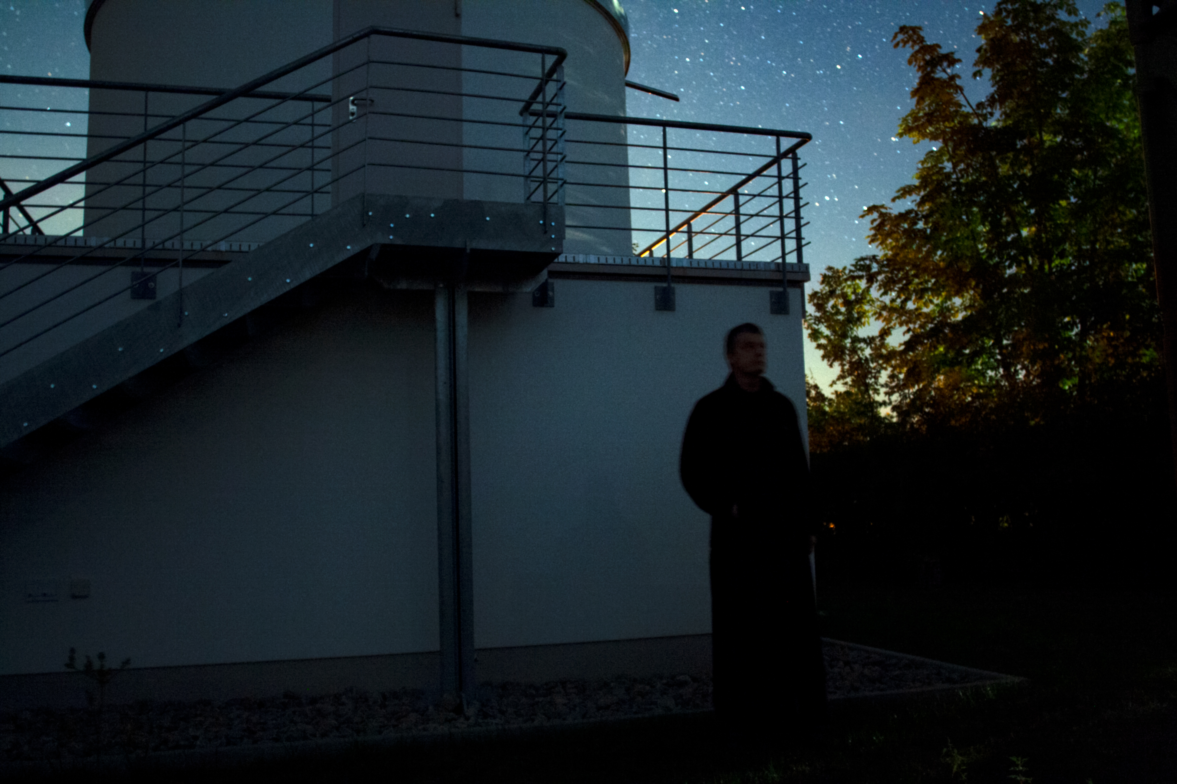 Nicht nur durch Sonnen- und Mondlicht können Schatten geworfen werden, sondern auch durch das Venuslicht! Beobachtet habe ich dieses Phänomen an der hellen Wand der Klostersternwarte in Münsterschwarzach am 27. August 2020. Im Wettlauf mit der aufziehenden Dämmerung baute ich schnell Foto und Stativ auf und konnte das Phänomen auf ein Bild bannen. Geholfen hat dabei die Abminderung der Helligkeit der Morgendämmerung durch Bäume, die in der richtigen Richtung standen.