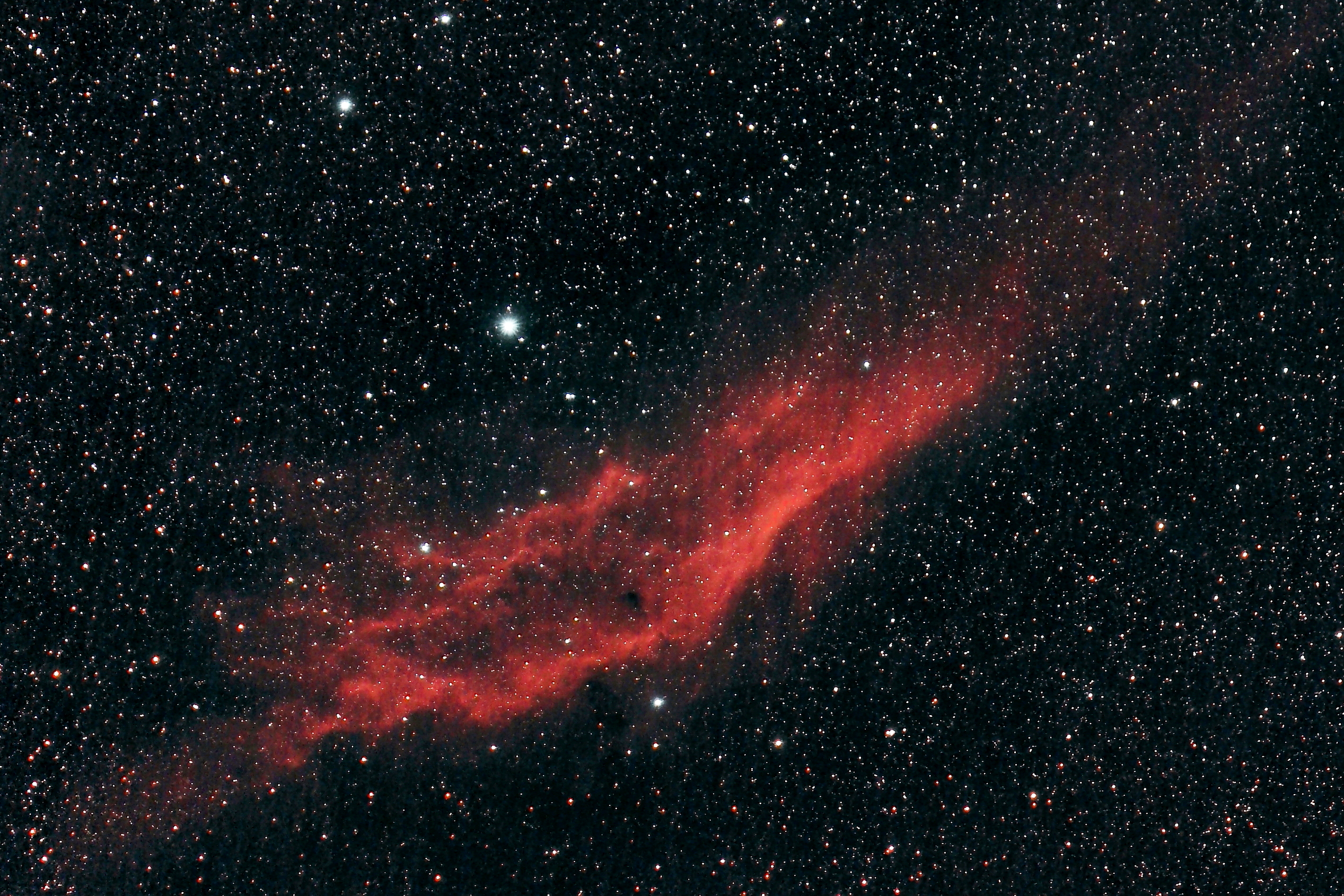 Wer hätte nicht Lust, jetzt im November in den Sunshine State zu verreisen. :) Geht auch ohne Flieger, und so möchte ich euch heute dahin auf einem anderen, einfachen Weg entführen. Ein Blick in den Nachthimmel reicht ja dafür aus. :P Das Sternbild Perseus steht jetzt im November schon zu zivilen Zeiten günstig am Himmel. Und der Emissionsnebel NGC 1499, auch bekannt unter dem Namen California-Nebel, ist dort in einer Entfernung von 1000 Lichtjahren zu finden. Dieser Nebel ist die uns am nächsten gelegene H II-Region, ein Sternentstehungsgebiet, und hat einen Durchmesser von 60 Lichtjahren. 2,5 Stunden Licht konnte ich sammeln. Erstmals habe ich den Astronomik CLS-Filter gegen Lichtverschmutzung eingesetzt.