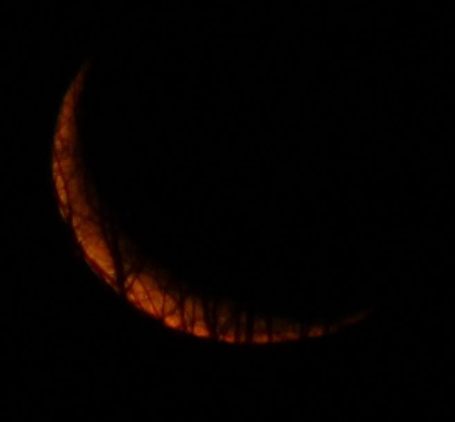 Aufgehende Mondsichel mit Ästen im Vordergrund