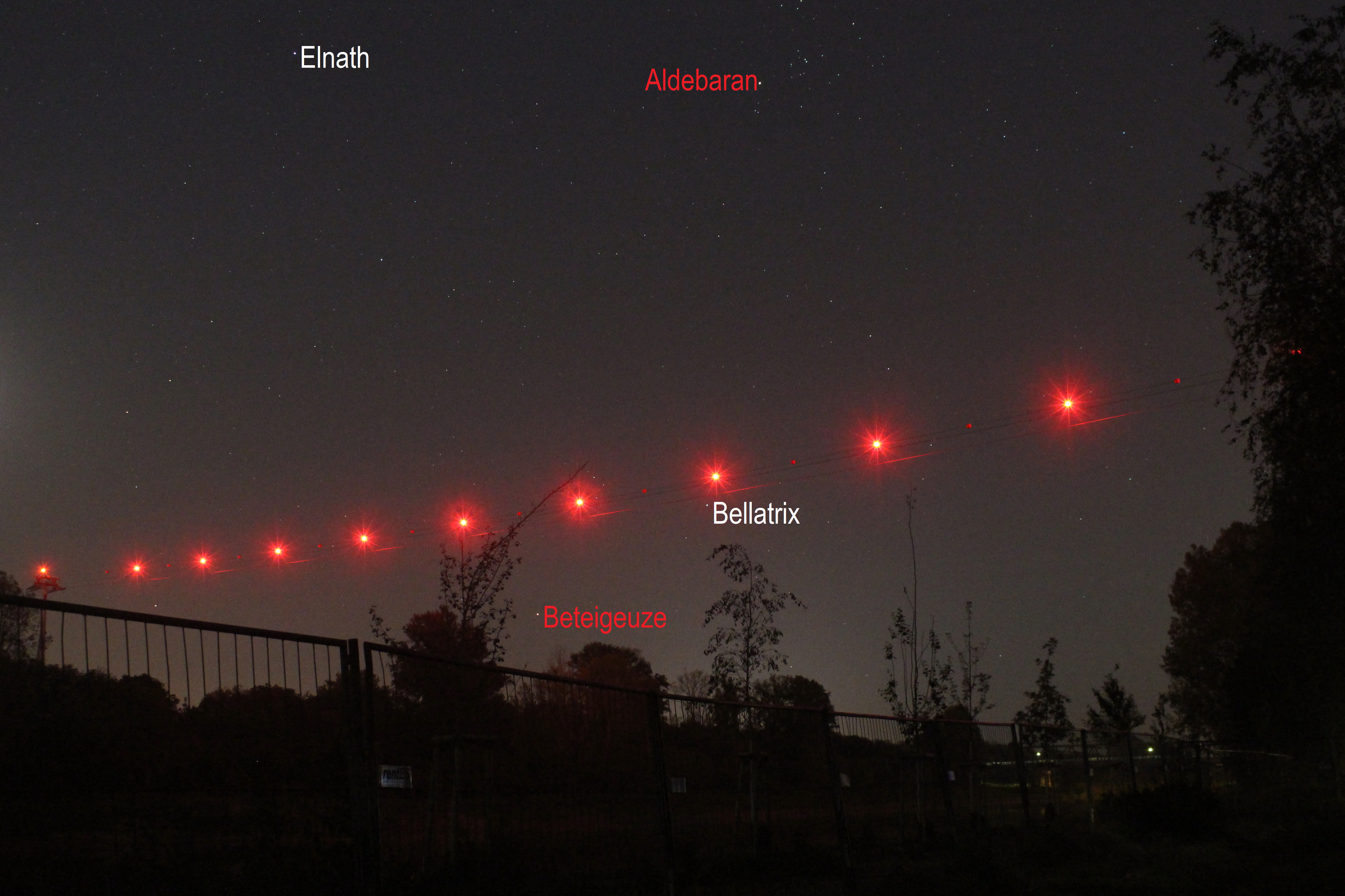 Leserbilder Astronomie: Aufgehender Orion mit Neckarquerung der Mannheimer Seilbahn (Objekte beschriftet)