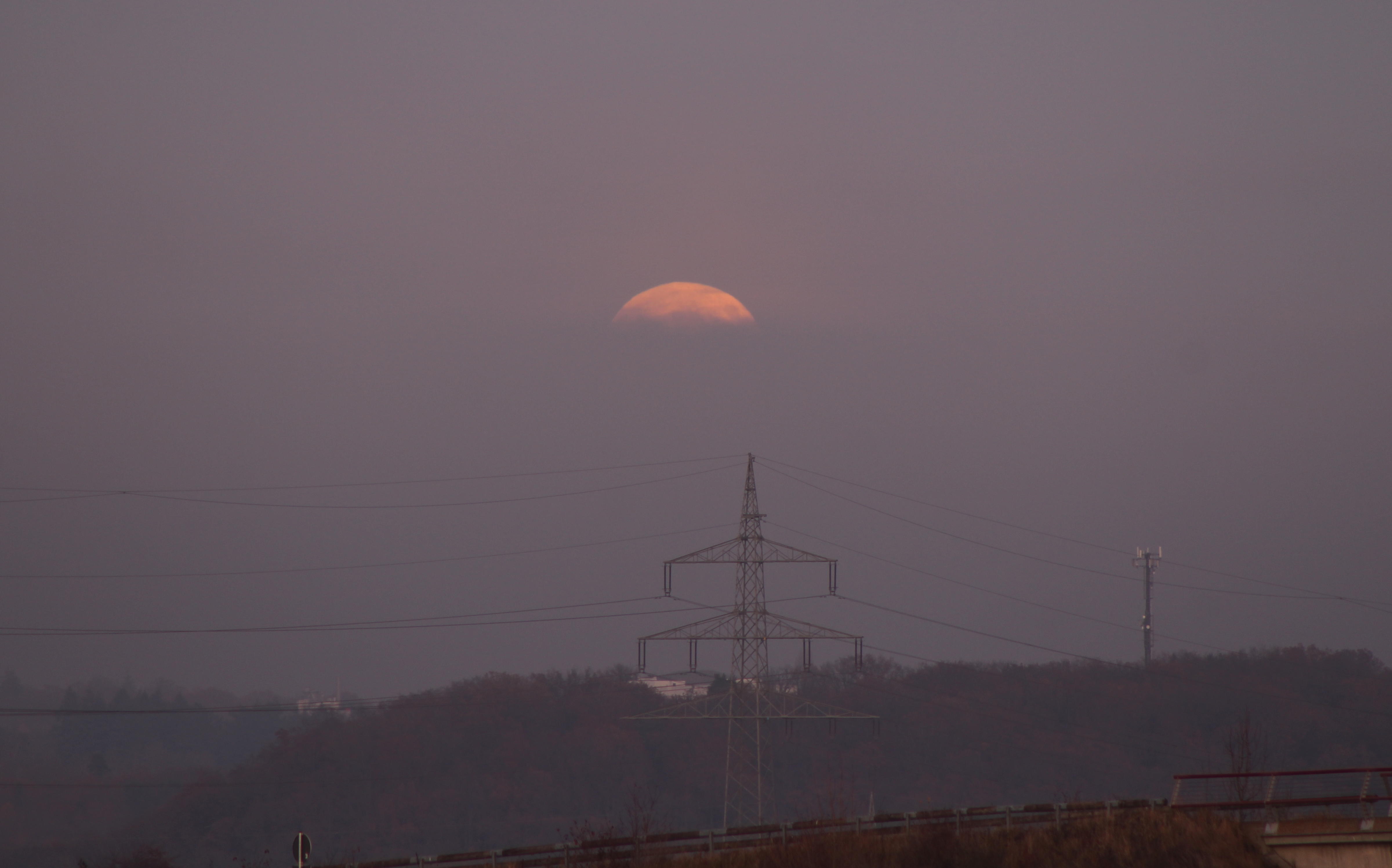 Der aufgehende Vollmond tritt aus den Wolken hervor, aufgenommen zwischen den Sindelfinger Ortsteilen Maichingen und Darmsheim.