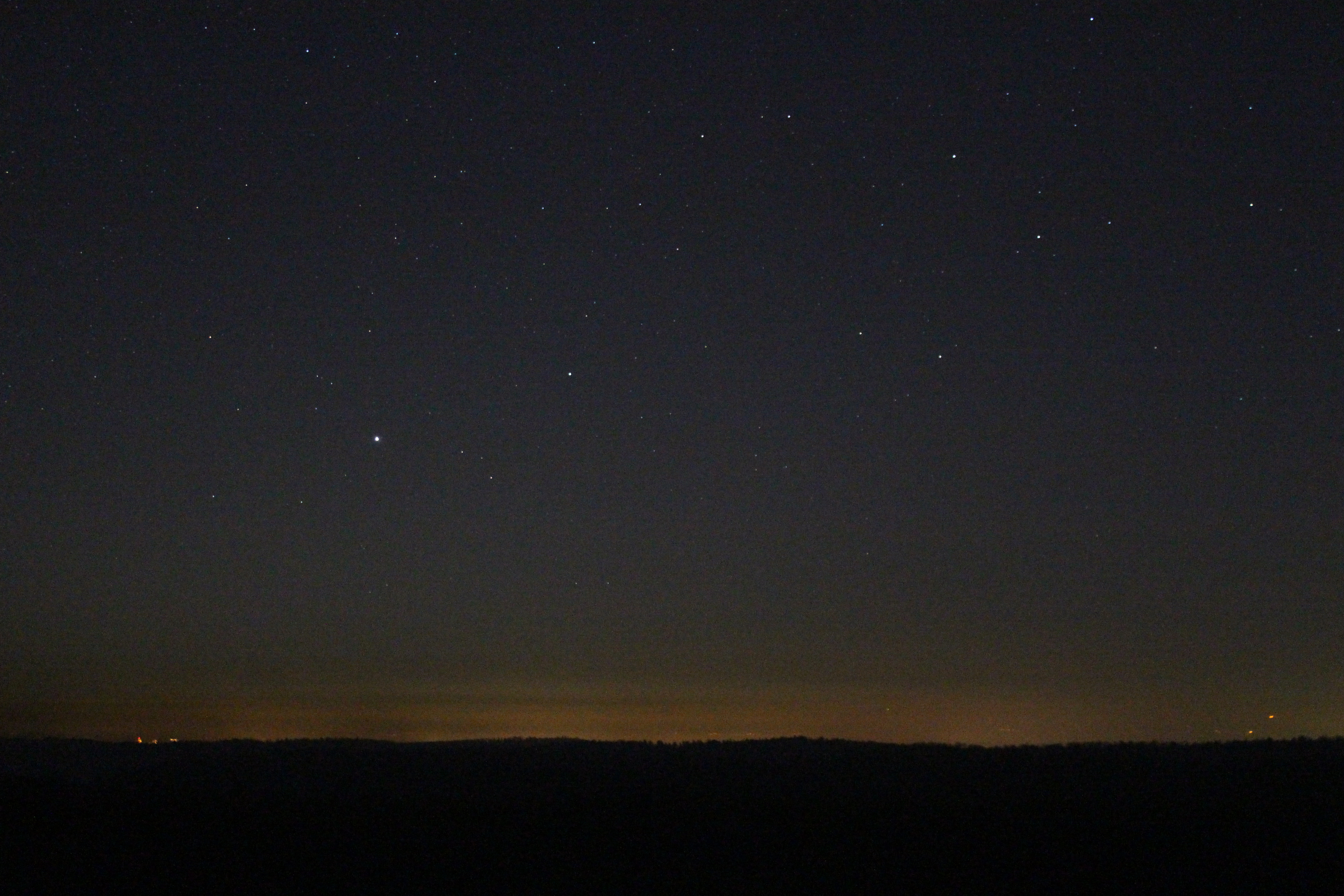 Das Sternbild Großer Hund geht über dem Schönbuch auf. Das Bild wurde auf dem Herrenberger Schönbuchturm aufgenommen.