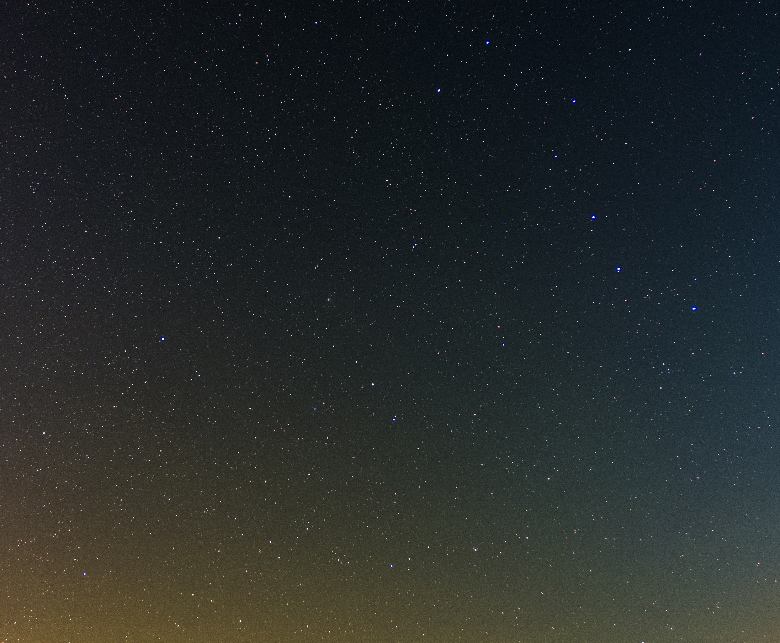 Ziemlich genau in der Mitte als kleiner grünlicher Punkt zu erahnen ist der Komet C/2022 E3 ZTF am 28. Januar 2023 vor Mitternacht.