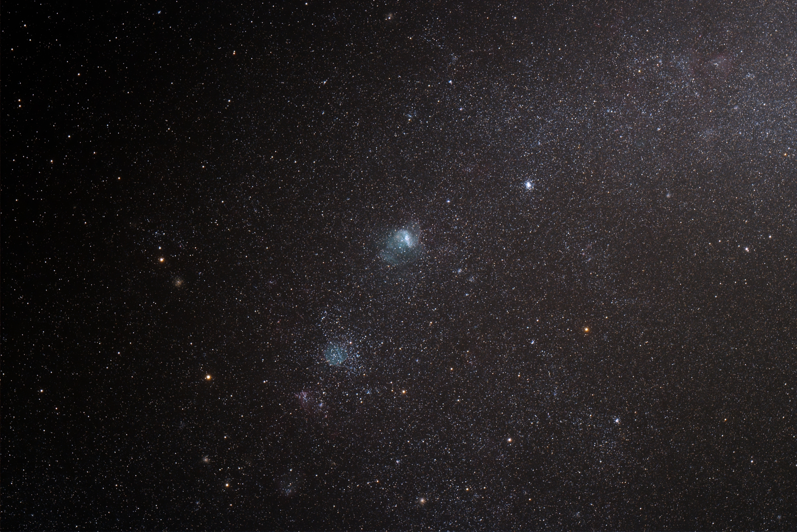 Bei unserem ersten Namibia-Urlaub, den meine Frau und ich unter anderem auf der Astrofarm Kiripotib verbracht haben, war die Kleine Magellansche Wolke eins meiner Wunschobjekte. In diesem Bild sind neben dem riesigen Sternhaufen NGC 346, der in einem Emissionsnebel eingebettet ist, weitere 16 auch recht unbekannte Objekte zu erkennen. Leider waren von den sechs Nächten zwei ziemlich bewölkt und zwei, was für den Namibischen Winter recht ungewöhnlich ist, sehr feucht. Sehr nette Gastgeber, die anderen tollen Gäste und dieser unbeschreiblich Südhimmel, ließen aber die Freude an unserem Hobby, den ich unter anderem mit einem 24-Zoll-Dobson noch krönte, nicht im geringsten schmälern.