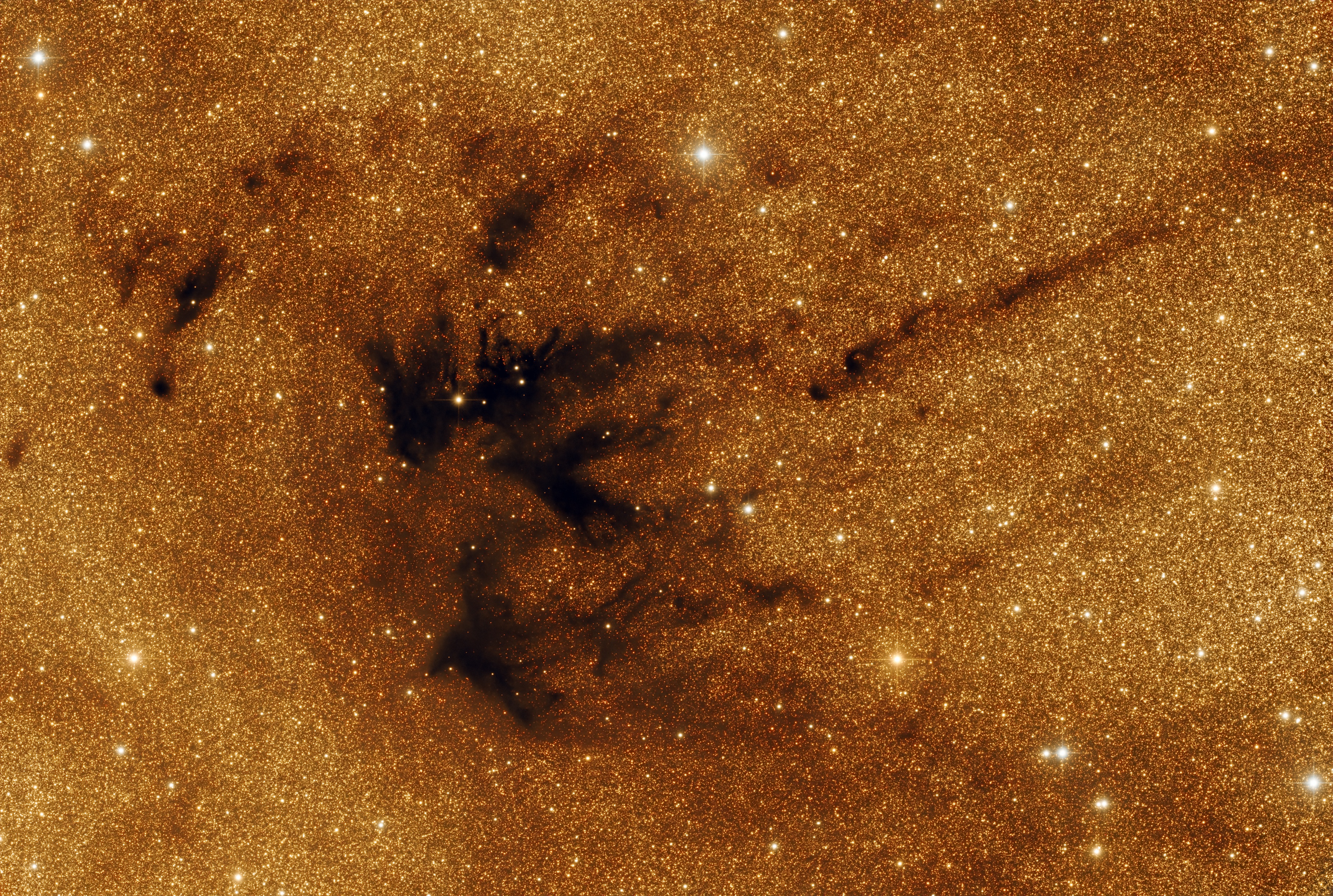 Barnard 276 ist ein beeindruckender Dunkelnebel im Sternbild Ophiuchus in der südlichen Hemisphäre. Dunkelnebel bestehen aus interstellarer Materie (Gas und Staub) und absorbieren das Licht der Sterne hinter ihnen. B 276 ist eine aktive Sternentstehungsregion und es ist dort sehr kalt: etwa -260 °C. Mehr Info und Bilder: https://www.skypixels.at/b276_IAS_info.html; Aufgenommen in Namibia - IAS Remote Observatory