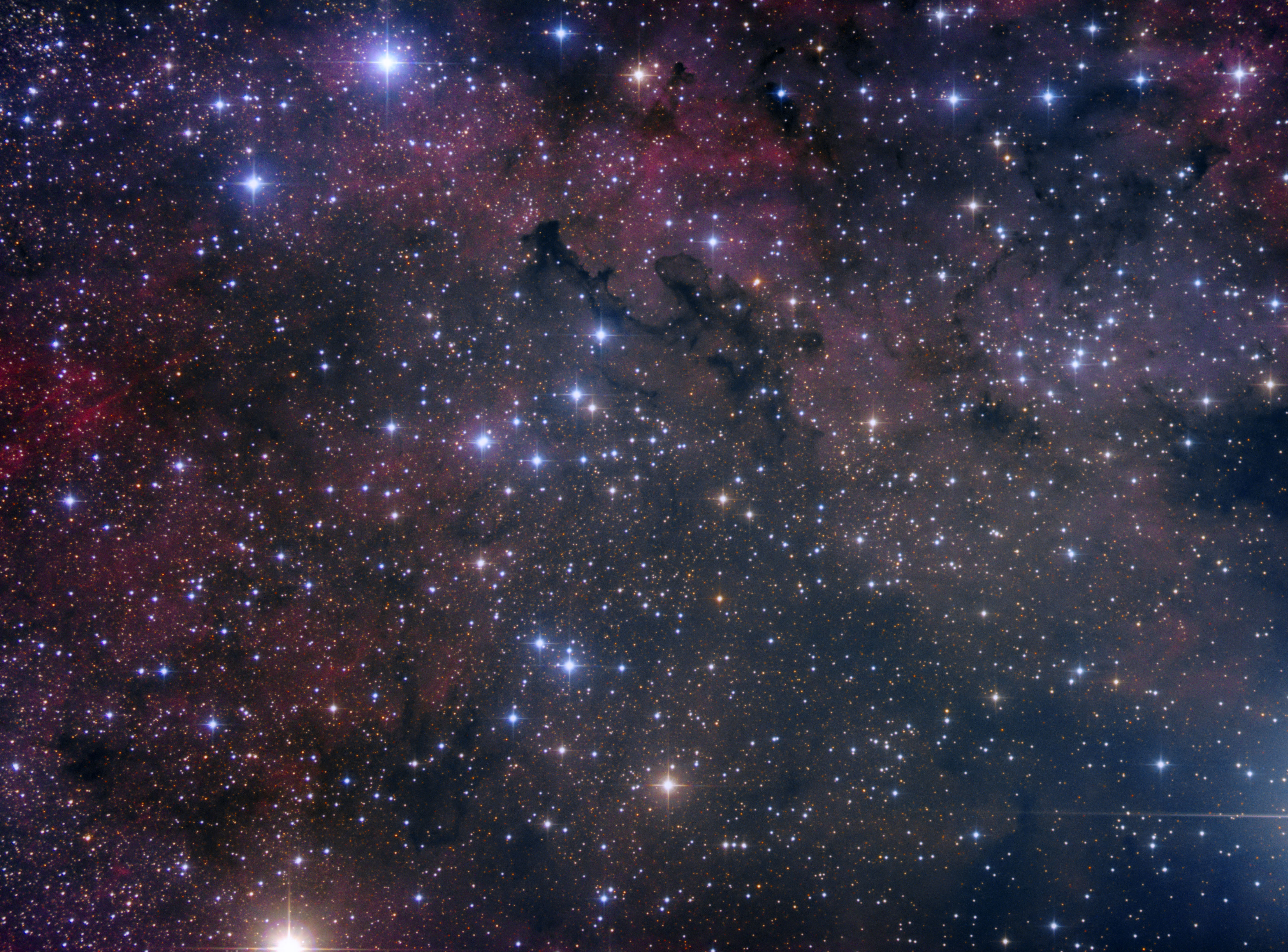 Den Dunkelnebel B 344 ist in der Nähe des mittleren Sterns im Sternbild Schwan zu finden. Dieser Stern, Gamma Cygni oder Sadr, leuchtet unten rechts knapp ausserhalb des Bilds. Die Dunkelwolke befindet sich oberhalb der Mitte der Aufnahme und bildet einen Teilbereich des aus Staub und Gas bestehenden Gamma-Cygni-Komplexes.