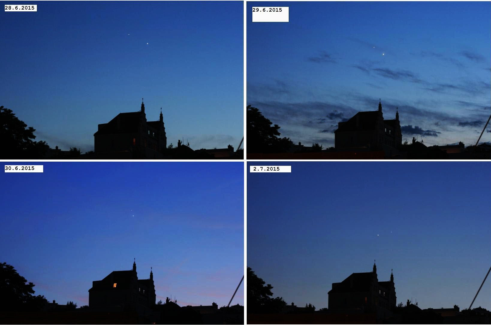 Konnte in Krems an der Donau, Niederösterreich dank der Schönwetterperiode an vier Tagen die Veränderung der Stellung von Venus und Jupiter am Abendhimmel beobachten und in Komposit von vier Aufnahmen vereinen.