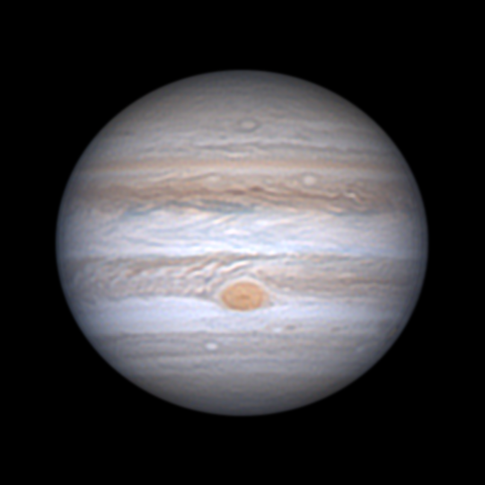 Die Nacht vom 27. auf den 28. März 2017 konnte ich nutzen, um Jupiter zur Zeit des GRF-Transits aufzunehmen. Überrascht haben mich die Details, die ich im GRF (Großer Roter Fleck) festhalten konnte. Hätte ich meinem 250-Millimeter-Newton gar nicht zugetraut.