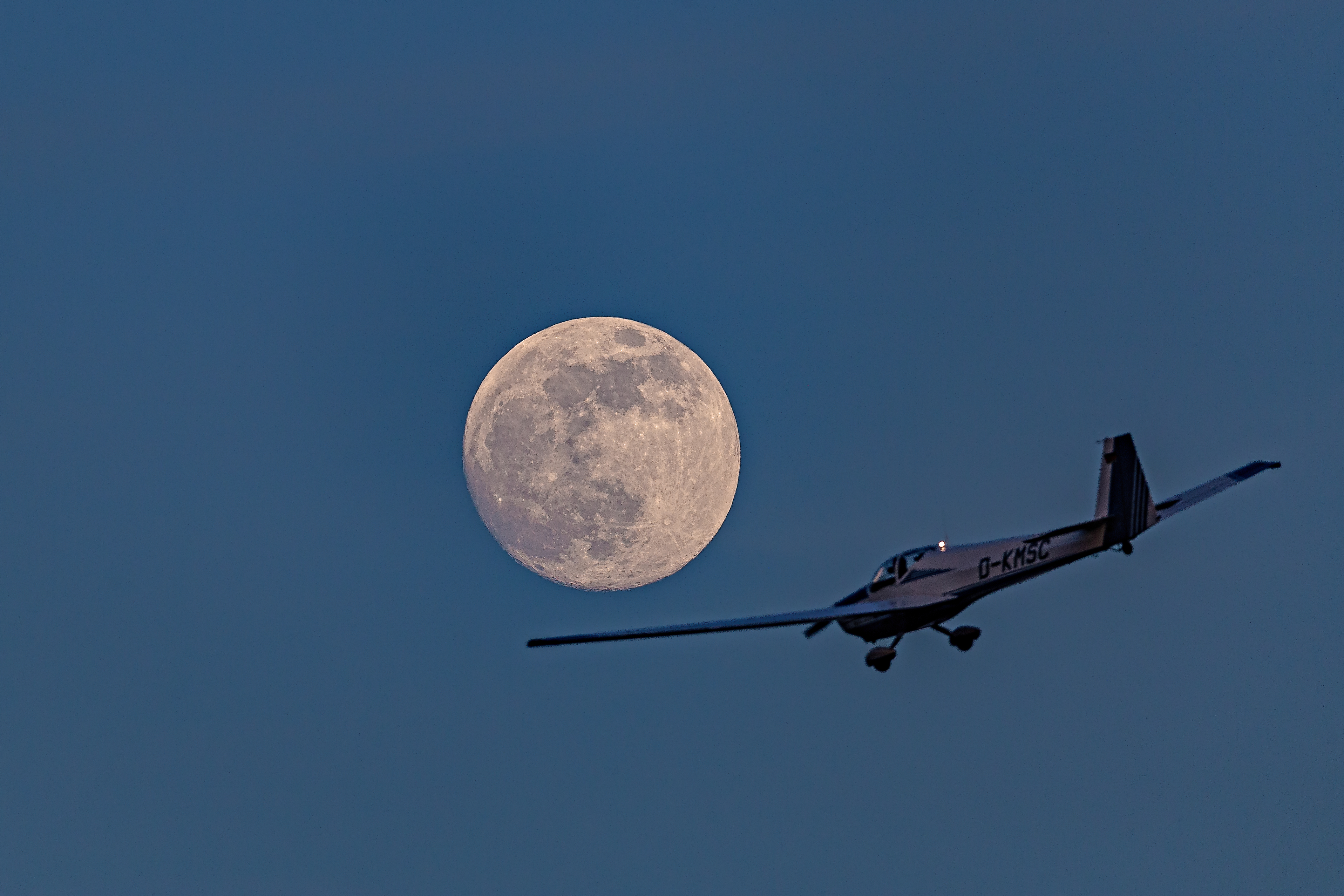Am 19. Febuar 2019 sollte mal wieder ein "Supermond" zu sehen sein - also ein neuerdings so reißerisch genannter Mond in Erdnähe. Da es klar war, dass zum Vollmond an diesem Tag das Wetter schlecht sein wird, habe ich mich schon am 18. Februar auf die fotografische Mondsuche begeben. Den fast-Supermond erwischte ich dann auch: ganz super mit einem Flieger.