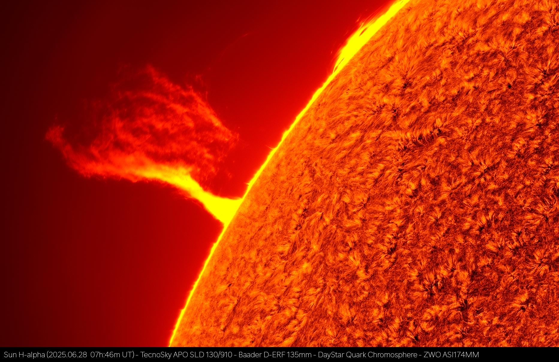 Solar prominence imaged on June 28, 2025 from Syracuse, Italy