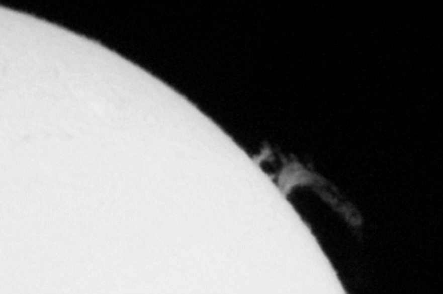 Ein Ausschnittsphoto einer bizarr geformten Protuberanz, die ich am späten Vormittag (ab 11:35 Uhr MESZ) des 22.7.2012 mit meinem Coronado PST aufnehmen konnte. Interessanterweise blieb diese zumindest für die weitere Beobachtungsdauer (bis gegen 13:00 Uhr MESZ, dann Wolken) etwa konstant, in etwa 15-minütigen Abständen habe ich dann weitere Bilder angefertigt, um eventuell zeitliche Veränderungen aufzeichnen zu können.