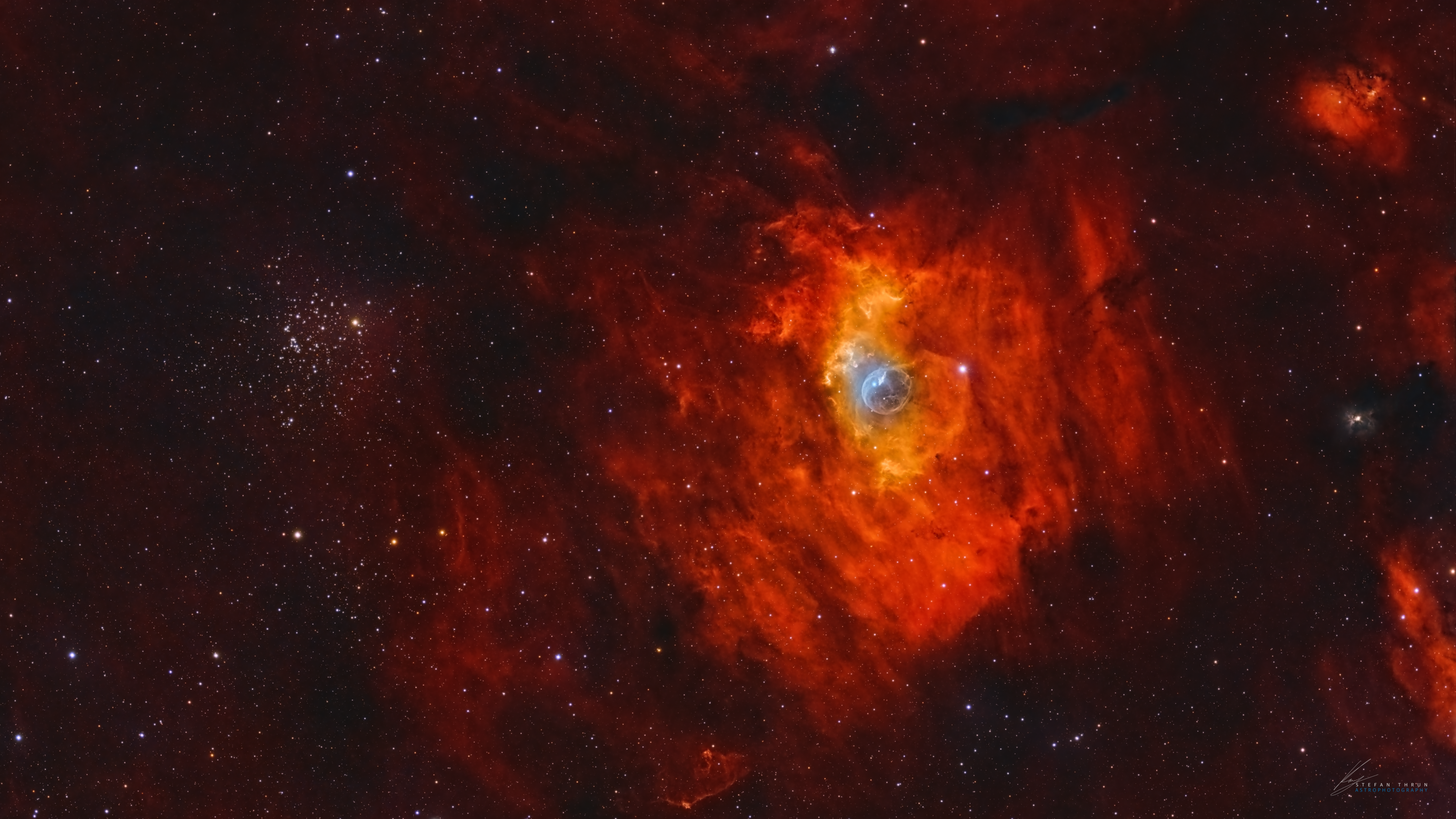 allein der Blasennebel ist bereits ein atemberaubendes Objekt in unserem Universum, wenn ein offener Sternhaufen hinzugefügt wird, ist er umso schöner. Ich hoffe, ihr habt in letzter Zeit bessere Nächte als ich. Hier in Norddeutschland ist seit Wochen fast nichts möglich. Ich musste die Daten lange Zeit sammeln, um Ihnen wieder ein Bild aus dem Garten zu präsentieren. Ich würde mich freuen, wenn es euch gefällt...