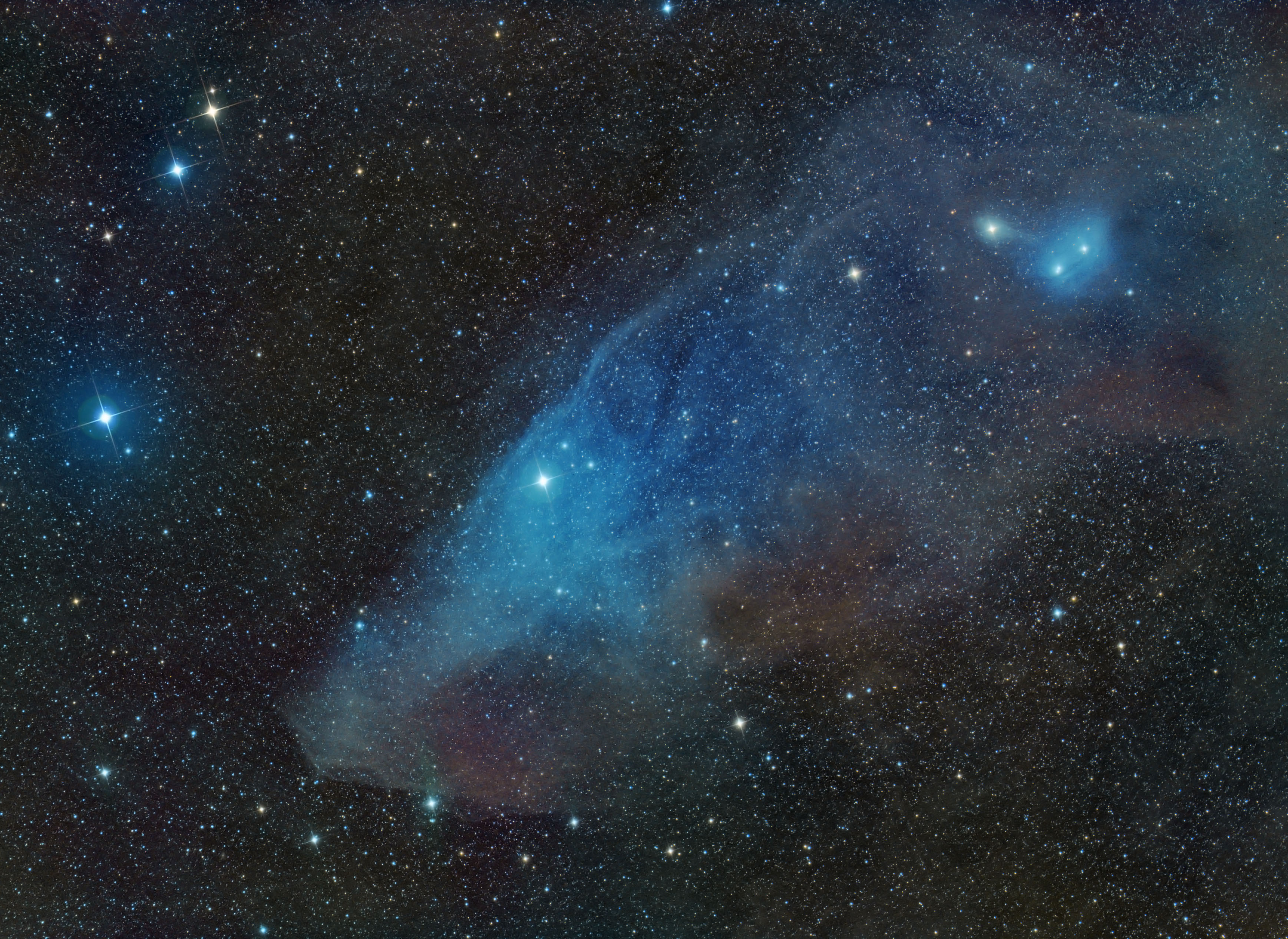Der helle Stern in der Mitte ist Jabbah, ein Mehrfachsternsystem, welches den Nebel erzeugt. Die intensive Strahlung des Sterns wird von den dichteren Teilen einer Molekülwolke reflektiert (bräunliche Flecken im Bild), wobei das Licht seine roten Anteile verliert. Der zweite Reflektionsnebel oben rechts ist IC 4601.