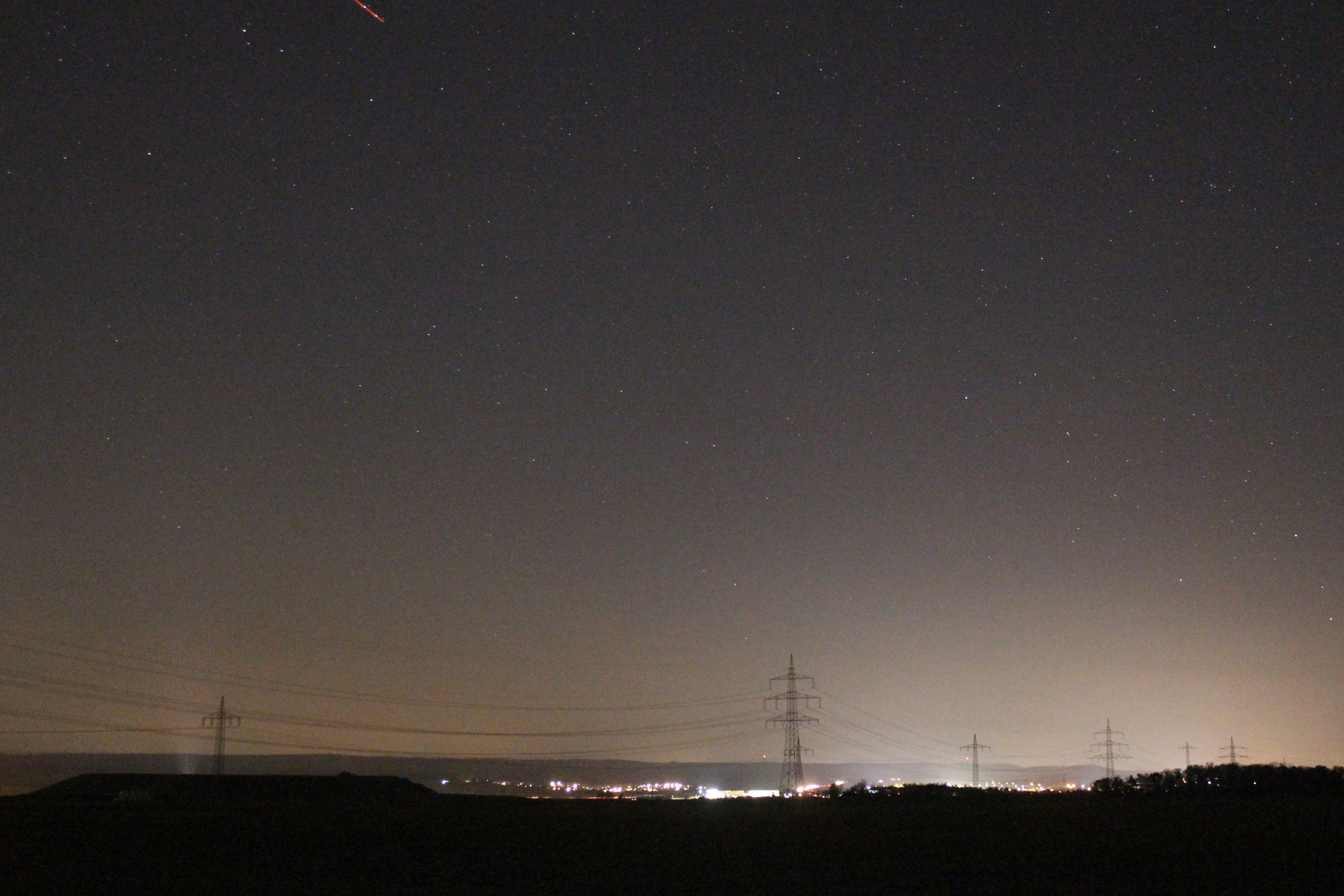 aufgenommen nordwestlich von Ehningen. Man erkennt auf dem Bild neben den nördlichen Sternen des Sternbilds Schiffsheck und den östlichen Sternen des Großen Hundes auch Sterne der lichtschwachen Sternbilder Kompass und Luftpumpe.