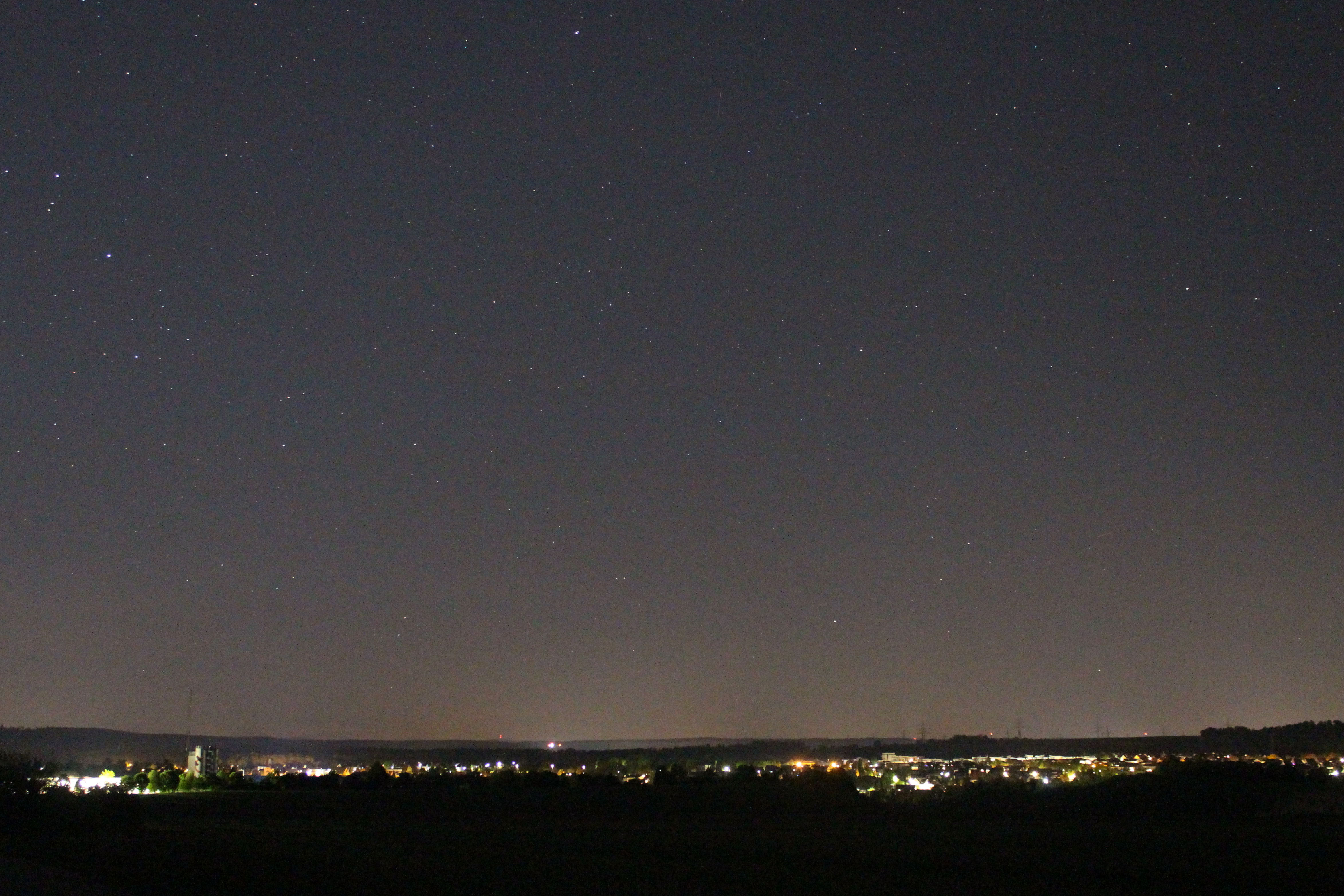 Blick zum Südhorizont mit den nördlichen Gebieten der Sternbilder Wolf und Zentaur, den Ostteil der Wasserschlange, den südlichen Gebieten der Waage und den westlichen Arealen des Skorpions. Das Bild entstand zwischen dem Sindelfinger Ortsteil Maichingen und dem Grafenauer Ortsteil Döffingen.