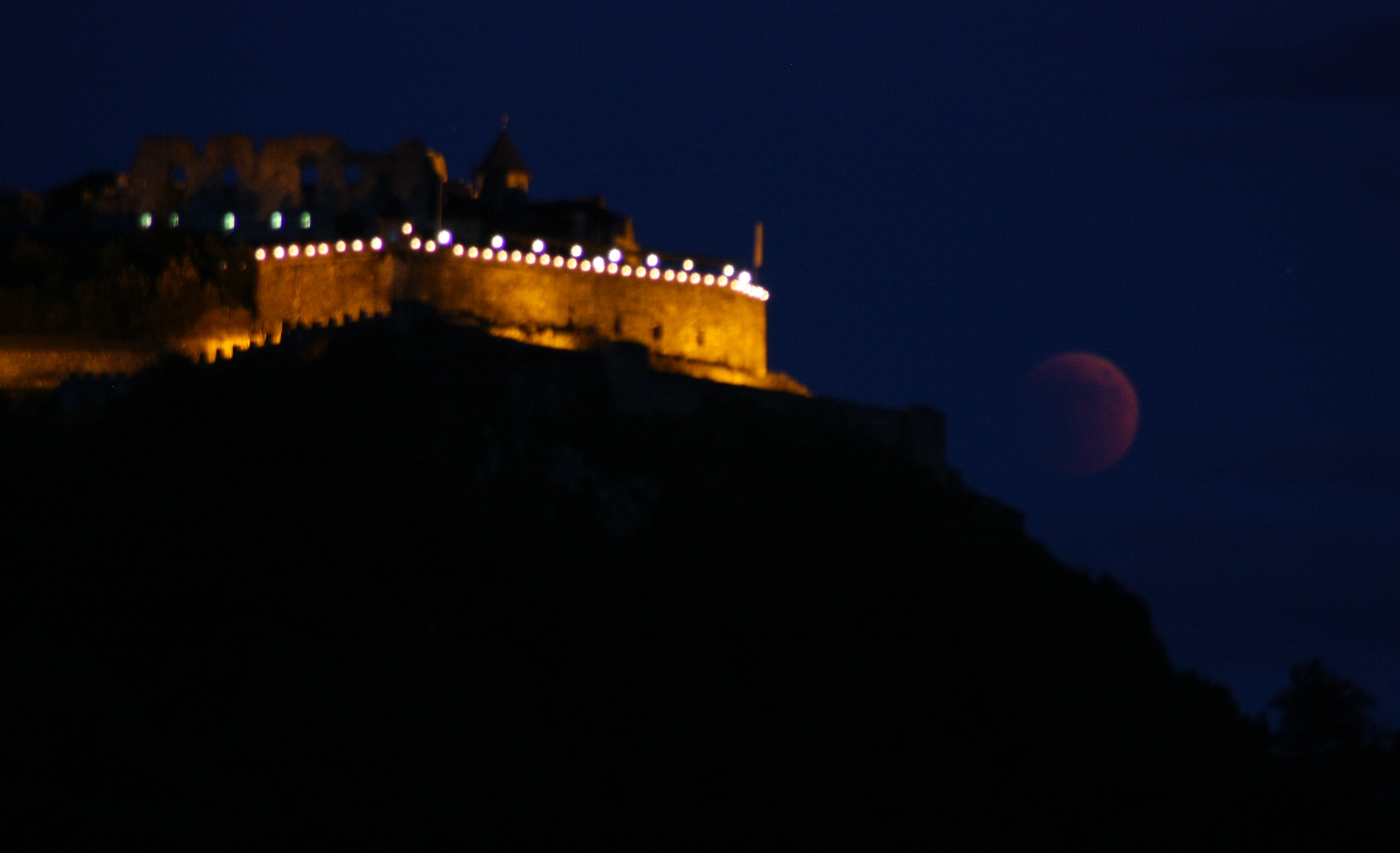 Leserbilder Astronomie: Burgruine Landskron bei Mondfinsternis