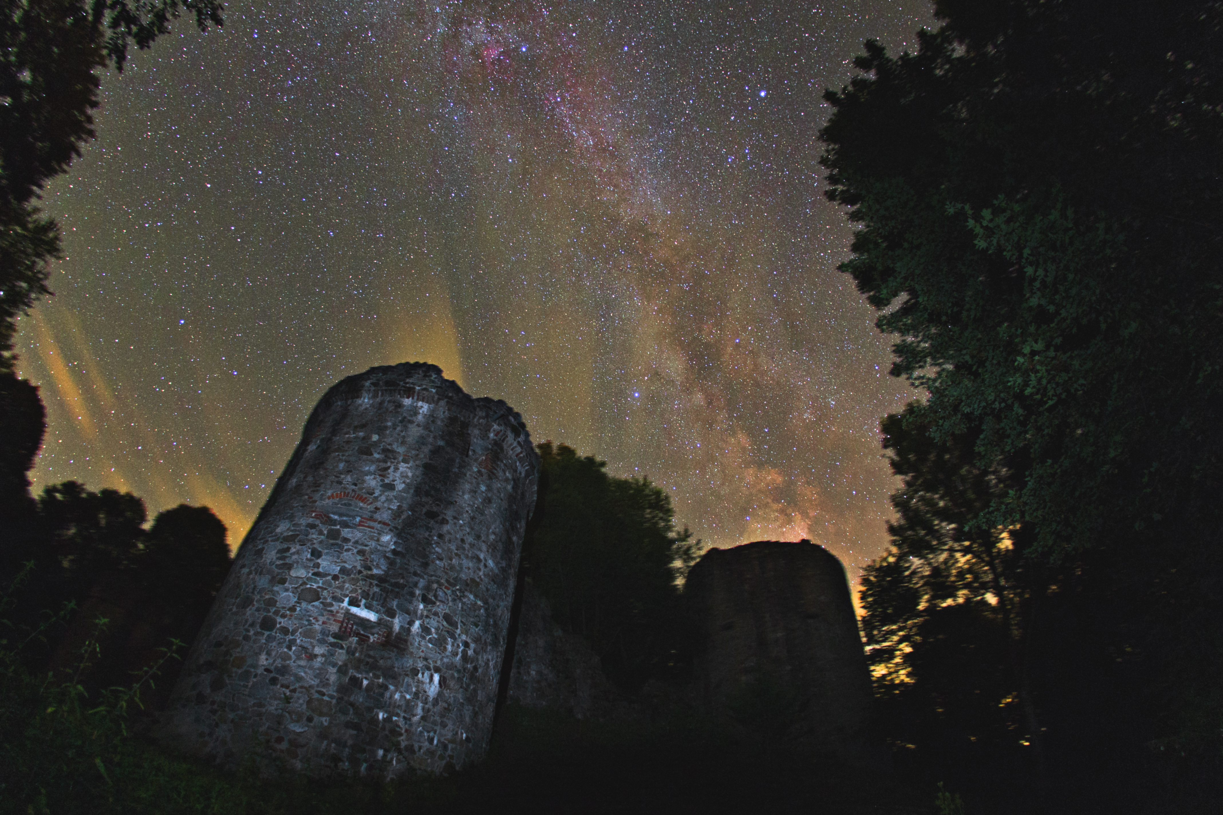 Die Burg Ratzenried wurde vermutlich zu Beginn des 12. Jahrhunderts erbaut. Nachdem die Ratzenrieder Ende des 13. Jahrhunderts ausstarben, wechselte die Burg bis ins 17. Jahrhundert mehrfach die Besitzer. Mit meiner mobilen Minimontierung konnte ich die Sommermilchstraße über der Burg einfangen.