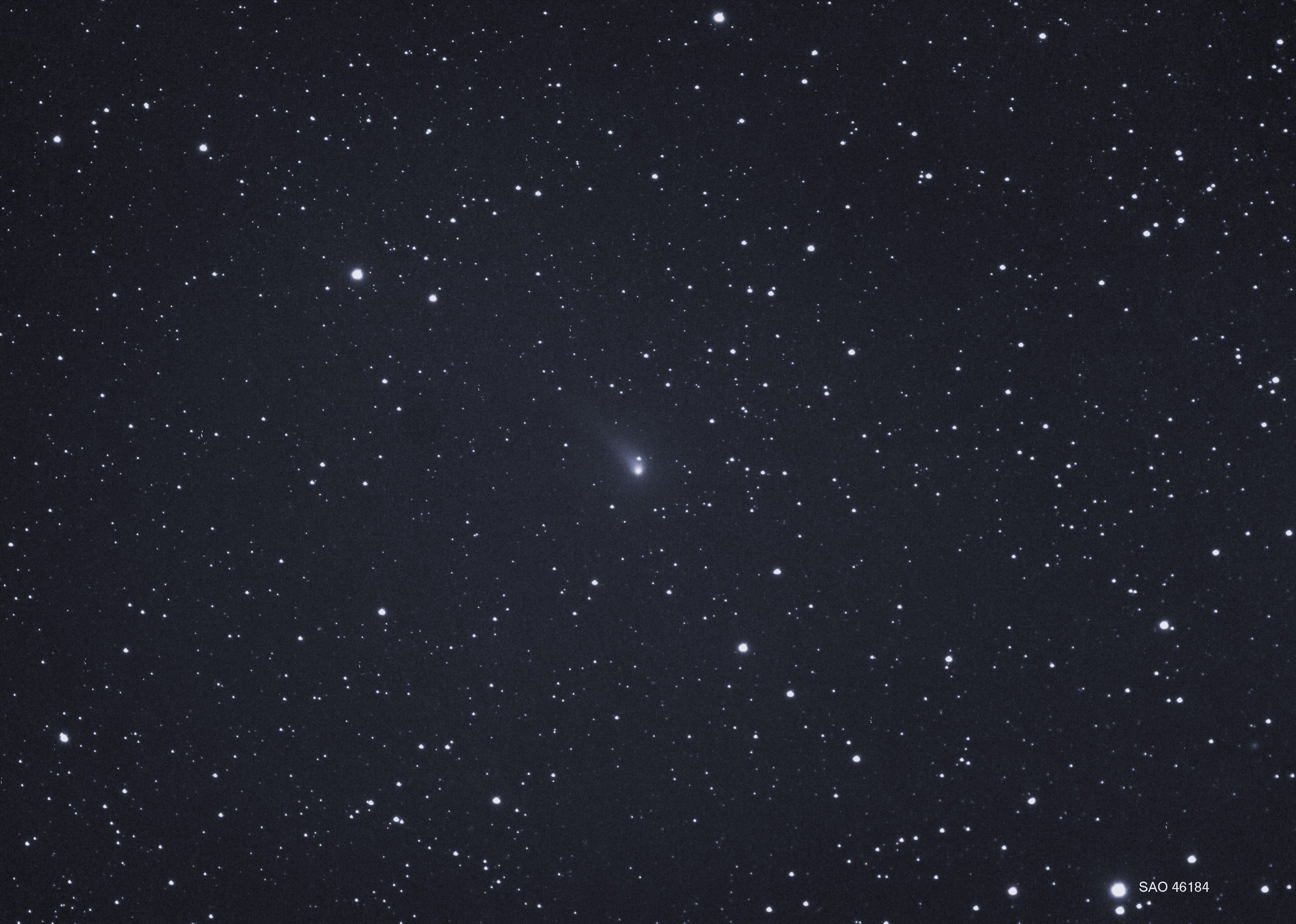 Heftige Windböen in den Vogesen zwangen mich, ein Teleskop mit kurzer Brennweite zu wählen, um den Kometen möglichst wackelfrei auf das Bild zu bannen.