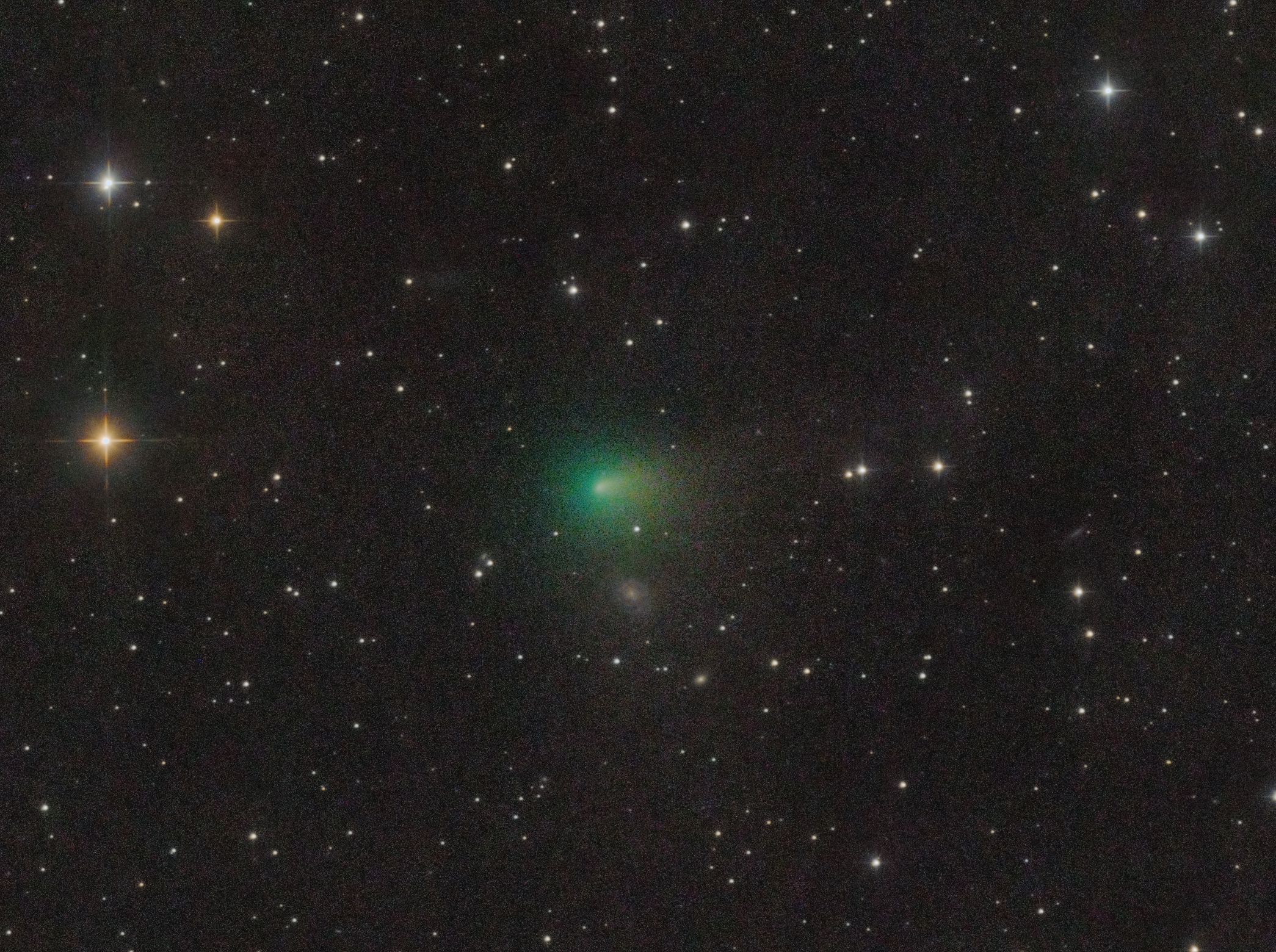 Aufnahme des Kometen "C/2019 Y1 ATLAS" am 18. Mai 2020 um 01:07 UT. Die Galaxie direkt unter dem Kometen ist NGC 3394.
