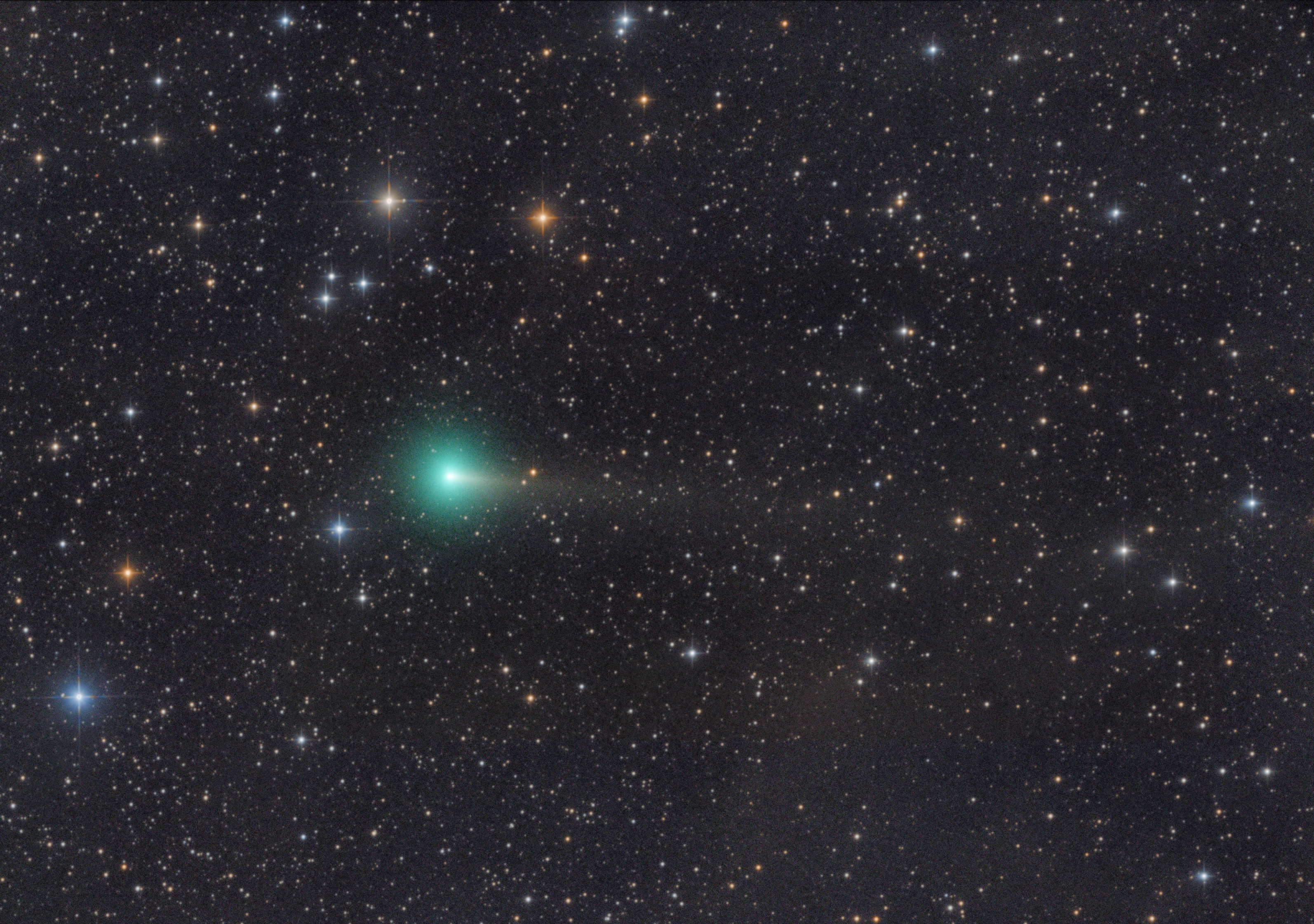 Aufnahme des Kometen C/2019 Y1 ATLAS am 23. April 2020. Ich konnte nach Einbruch der Dämmerung jeweils 6 x 2 Minuten pro Kanal im LRGB-Verfahren aufnehmen, bevor der Komet hinter