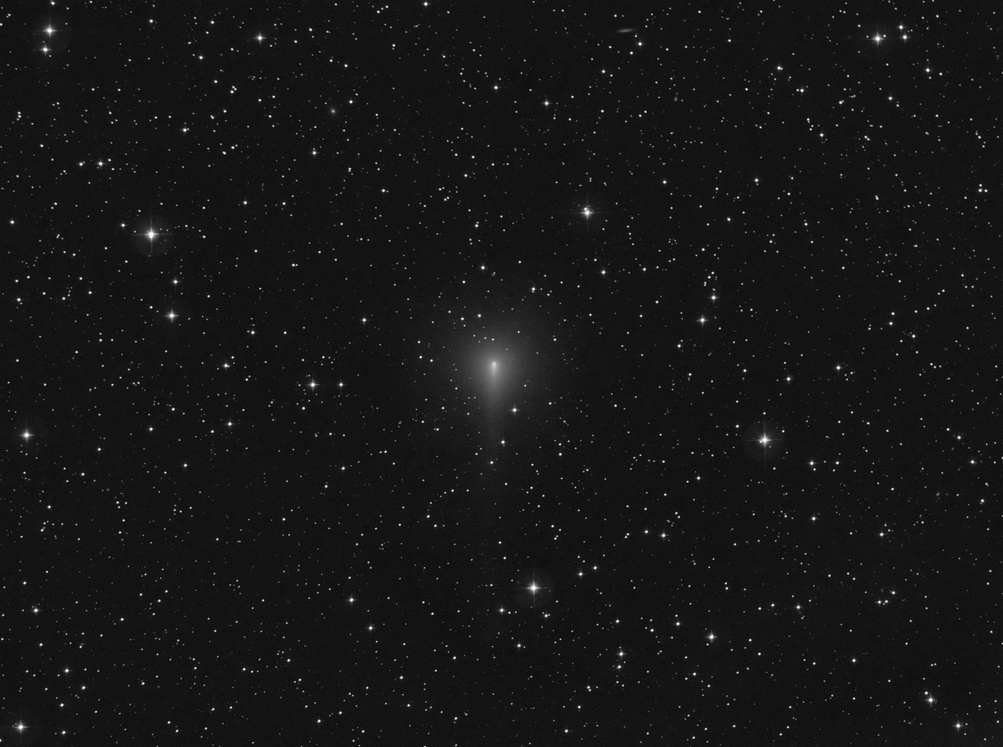 Gestern konnte ich endlich das Teleskop zufriedenstellend justieren. Anschließend habe ich wieder auf den Kometen gehalten, diesmal mit dem UHC-S-Filter wegen Mond (93%). Der Filter lässt die Bereiche um 511 und 514 nm noch durch, wie eine kurze Recherche ergab.