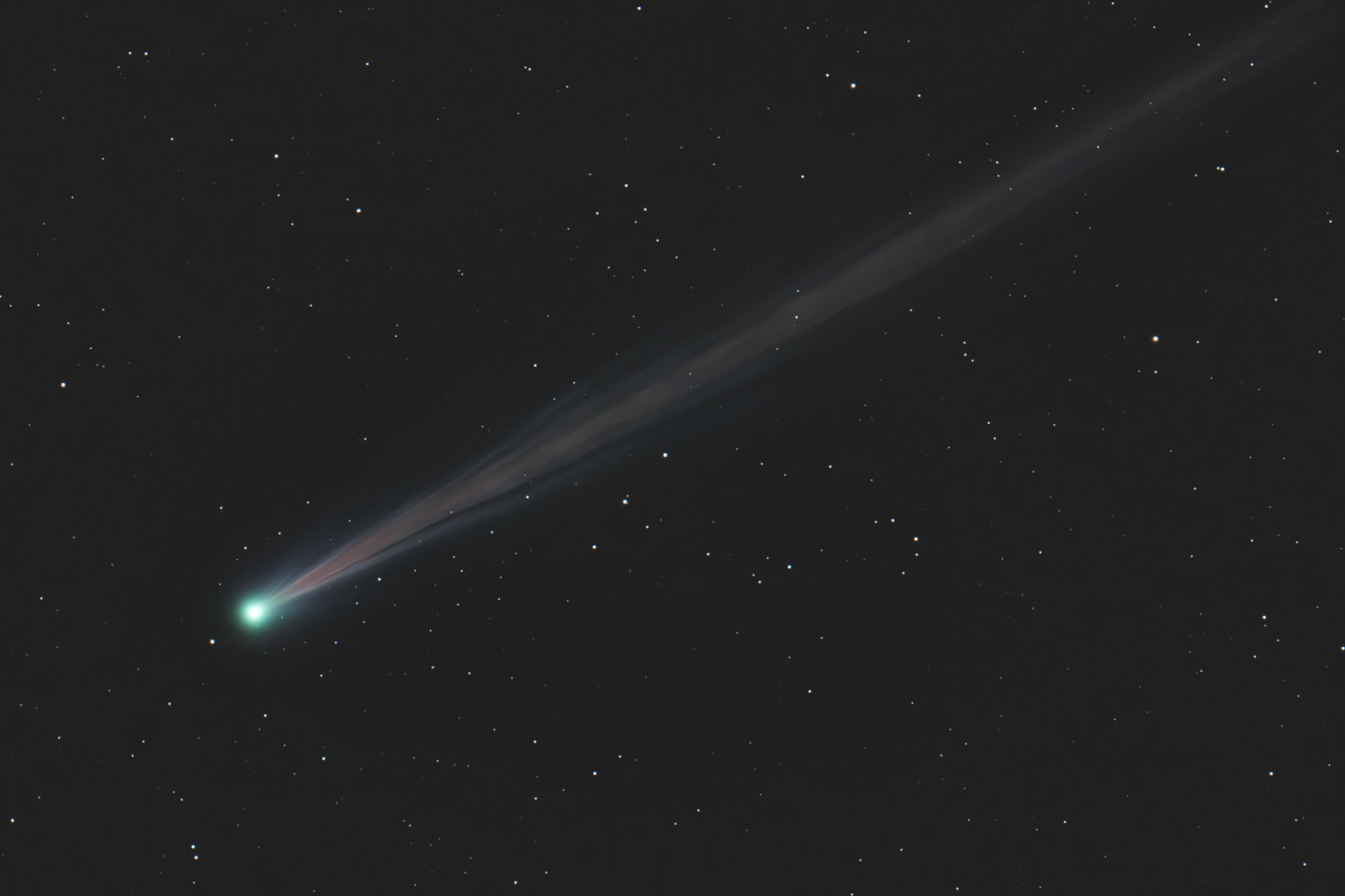 Ein Schnappschuss von Nishimura C/2023 P1, entstanden am frühen Morgen des 6. September 2023 bei 1280 mm f/8 mit einer ASI2400 MC Pro / Gain 100 auf einer Skywatcher EQ8-R. Es sind 24 x 1min zusammen gekommen.