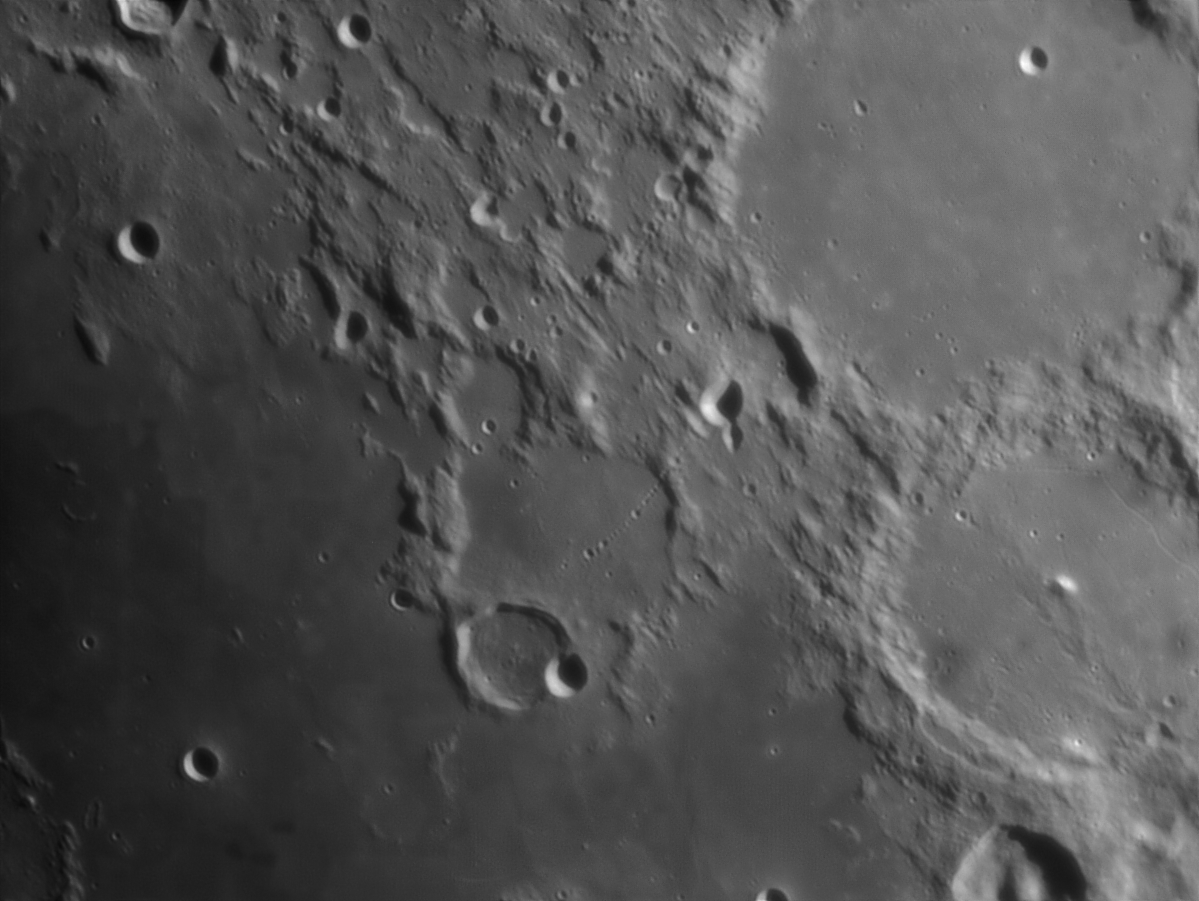 Die Catena Davy, eine Kraterkette mit einer Reihe von Kleinstkratern, zieht vom gleichnamigen Krater zur Wallebene Ptolemäus.